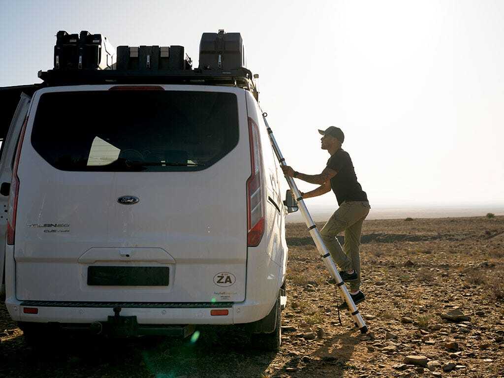 A telescopic ladder that effortlessly expands into a 2.9m, nine (9) step ladder to reach the top your vehicle to load goods and equipment onto the Roof Rack.