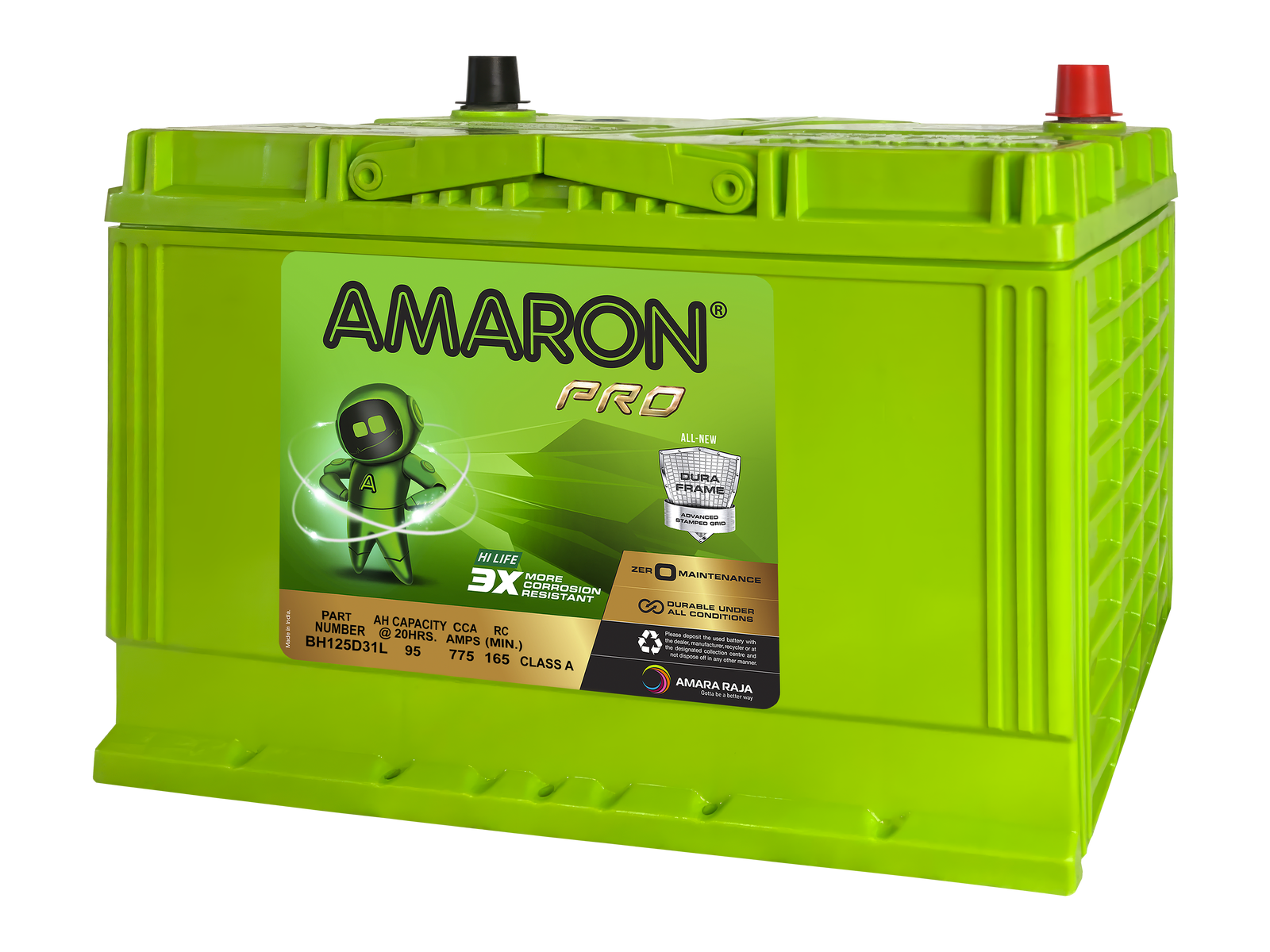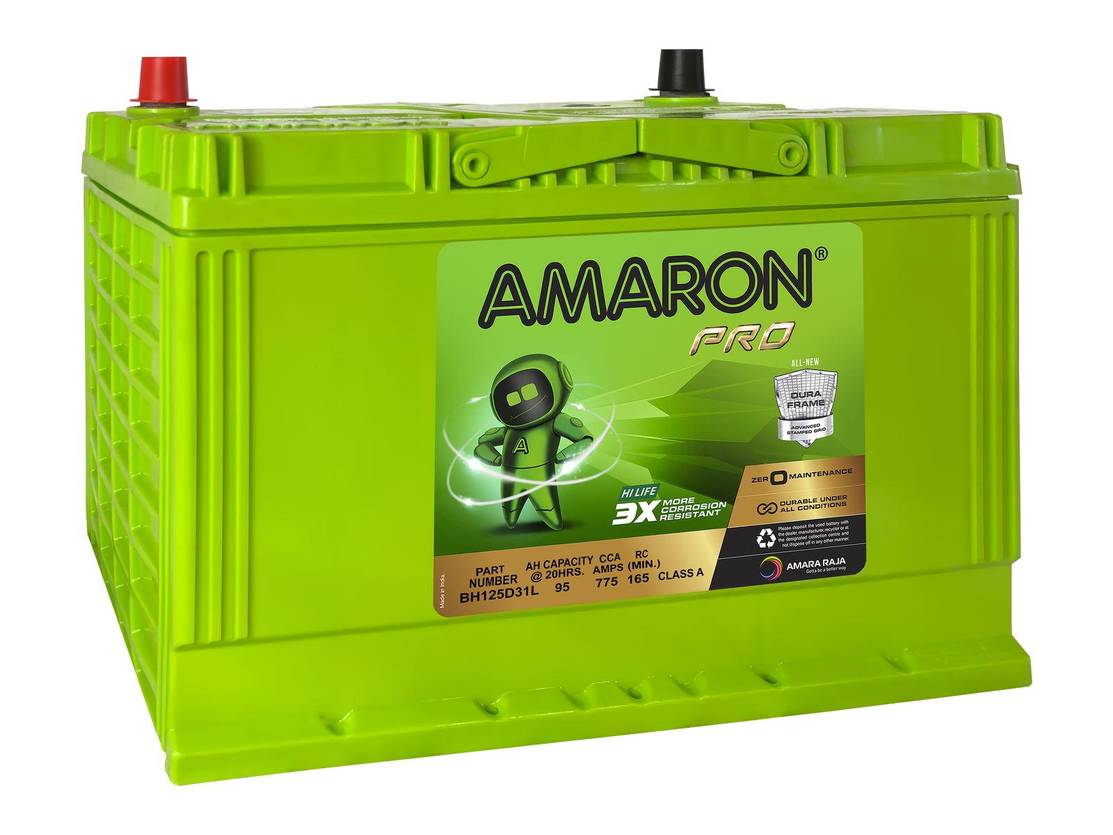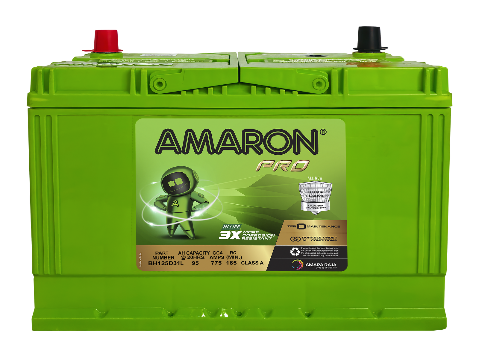 Amaron batteries are built tough, featuring a rugged and durable case designed to withstand the harshest conditions.