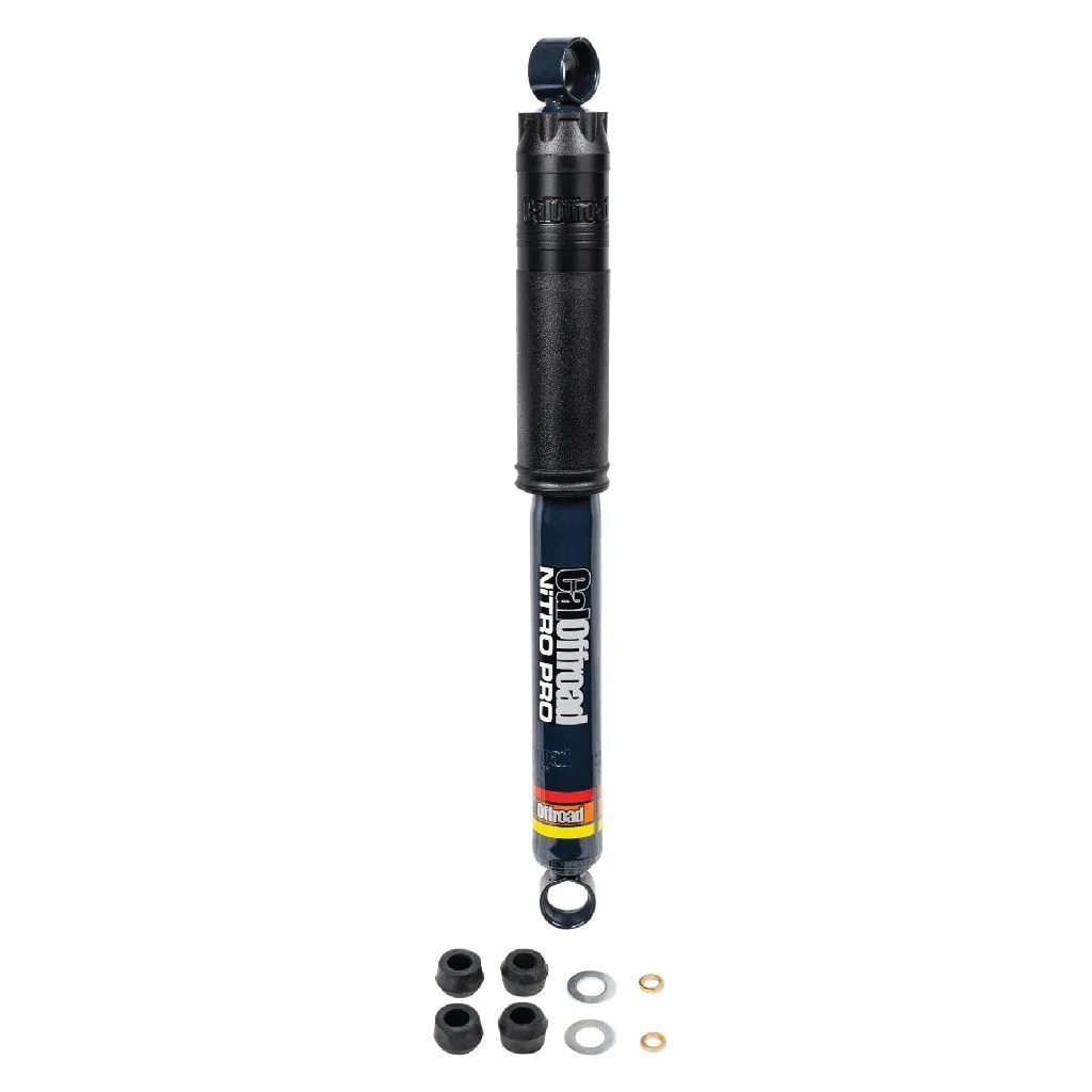 CalOffroad Nitro Pro offers a range of features designed to provide optimal performance and durability for various vehicle types and loads. With its twin tube construction, 18mm hard chromed piston rod, and larger internal bore, it delivers lower shock temperatures and increased strength. The large 54mm body, on most models, allows for better oil capacity and heat dissipation, while the gas pressurisation reduces foaming, fade and noise. The suspension also boasts all-weather Fuchs oil for extreme temperature operations, a slip ring rod guide for precise damping control, and a 2-part epoxy coating for superior resistance to chips and corrosion.