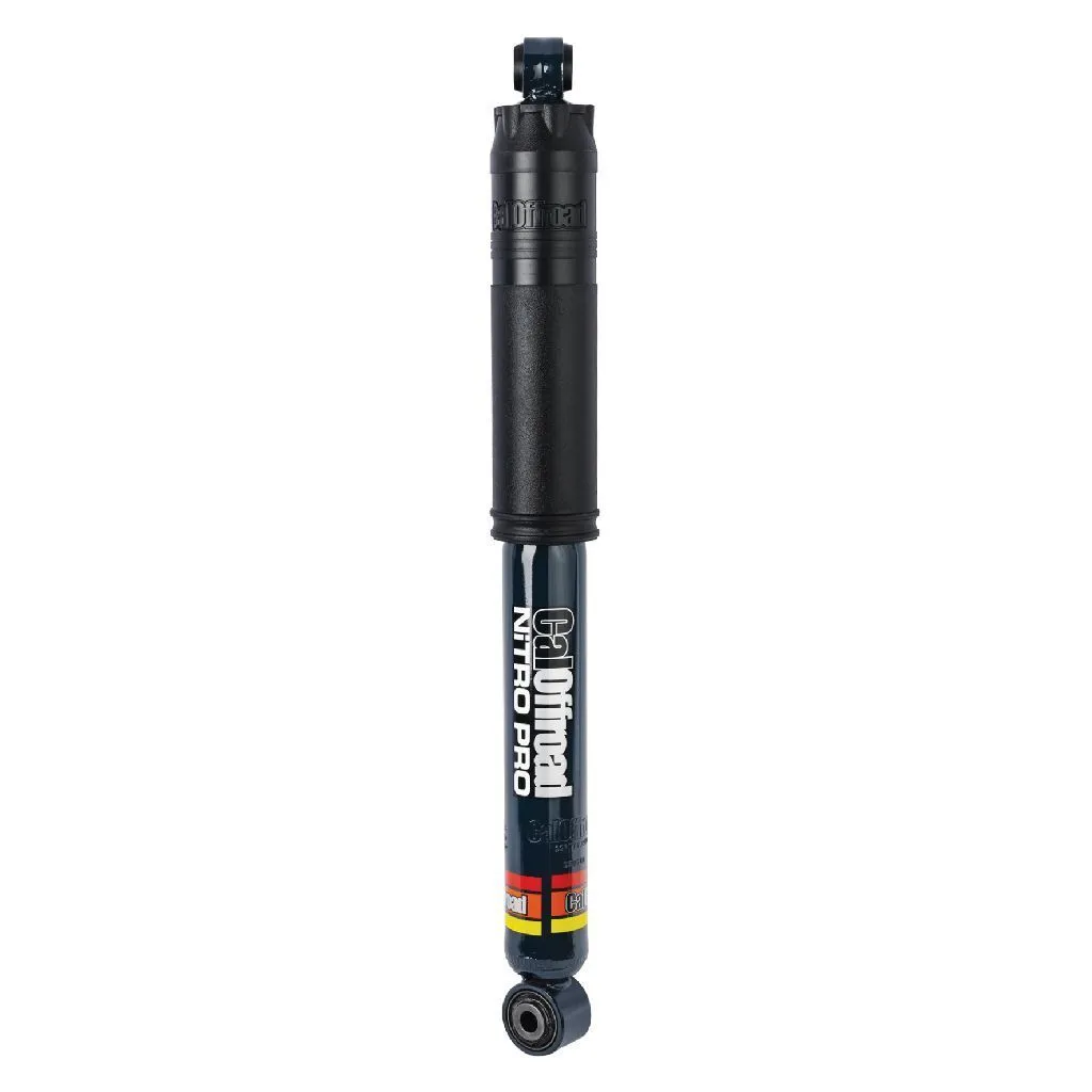 CalOffroad Nitro Pro offers a range of features designed to provide optimal performance and durability for various vehicle types and loads. With its twin tube construction, 18mm hard chromed piston rod, and larger internal bore, it delivers lower shock temperatures and increased strength. The large 54mm body, on most models, allows for better oil capacity and heat dissipation, while the gas pressurisation reduces foaming, fade and noise. The suspension also boasts all-weather Fuchs oil for extreme temperature operations, a slip ring rod guide for precise damping control, and a 2-part epoxy coating for superior resistance to chips and corrosion.