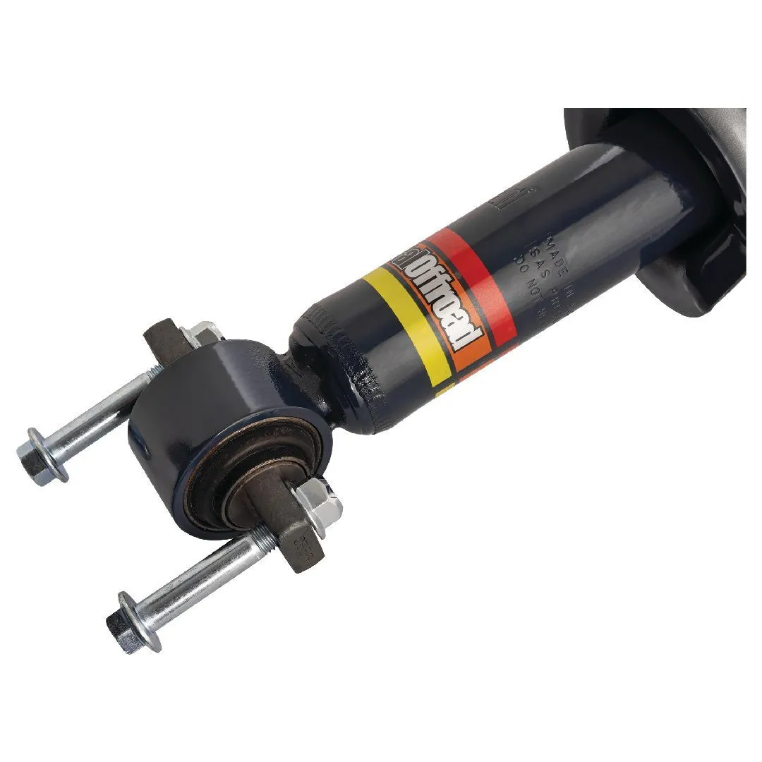 CalOffroad Nitro Pro offers a range of features designed to provide optimal performance and durability for various vehicle types and loads. With its twin tube construction, 18mm hard chromed piston rod, and larger internal bore, it delivers lower shock temperatures and increased strength. The large 54mm body, on most models, allows for better oil capacity and heat dissipation, while the gas pressurisation reduces foaming, fade and noise. The suspension also boasts all-weather Fuchs oil for extreme temperature operations, a slip ring rod guide for precise damping control, and a 2-part epoxy coating for superior resistance to chips and corrosion.