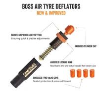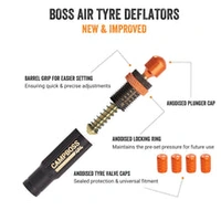 All 4 Adventure CampBoss Tyre Deflators provide a fast, convenient way to deflate multiple tyres simultaneously. They automatically stop at a pre-set pressure between 15 and 30 psi and include a protective neoprene pouch for storage.