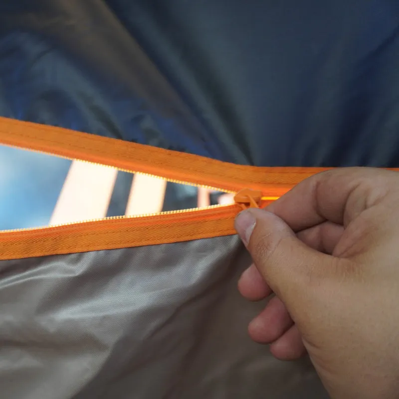 Built-in dual-coloured LED strips (white & amber) give you the right lighting at any hour, while a large zippered rear door provides quick access to your vehicle. Internal storage pockets keep wet and dry gear separate, so you stay organised and ready for whatever comes next.