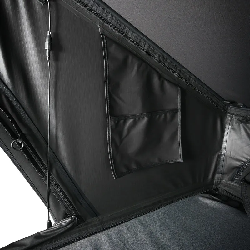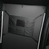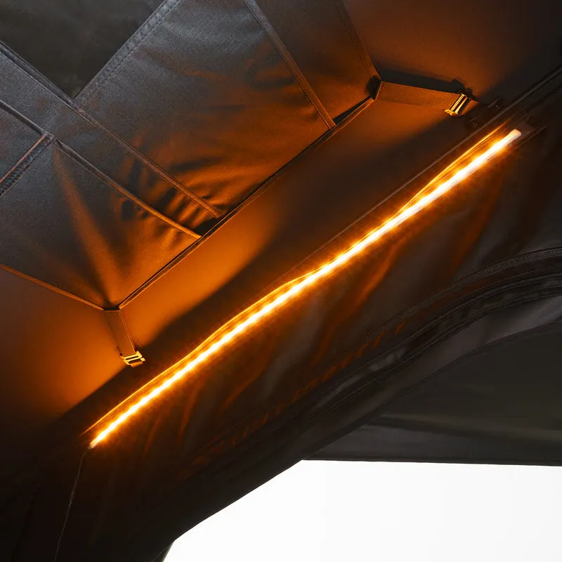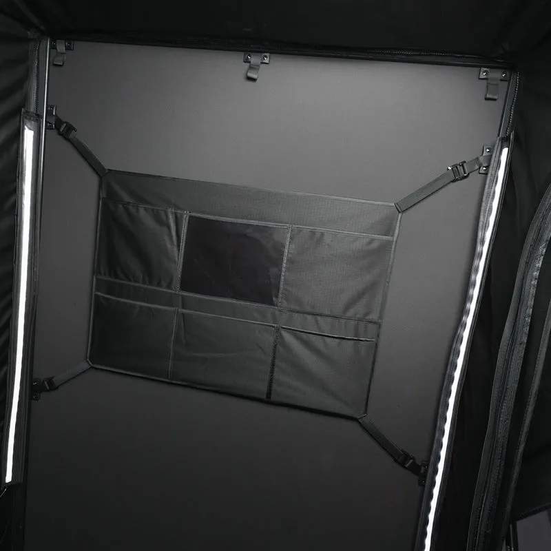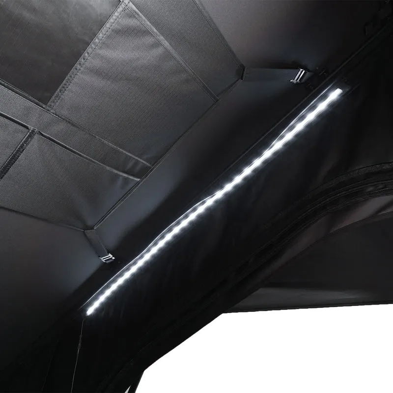 Inside, you’ll find a 50mm memory foam mattress, dimmable bi-coloured LED lighting, and 12V/USB power outlets to keep your devices charged (battery not included). Roof rails, internal storage pockets, and attachable shoe bags keep your gear organized, while German-engineered Stabilus gas struts and a 2.3m telescopic aluminum ladder make setup and living easy.