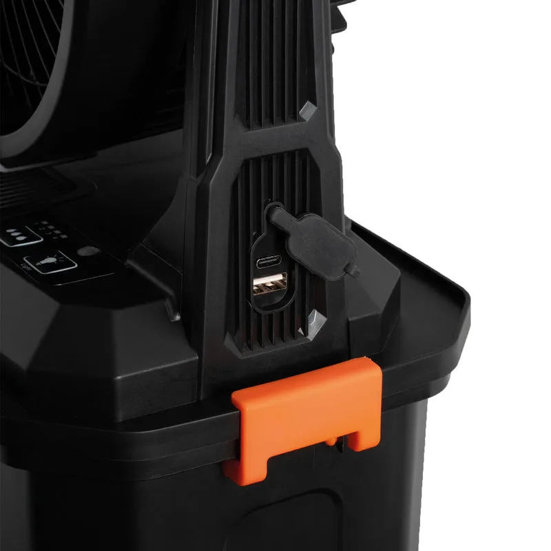 When it’s time to pack up, the fan unit tucks neatly into the tank for compact storage.