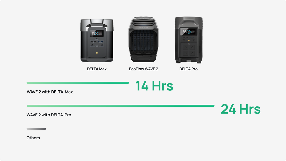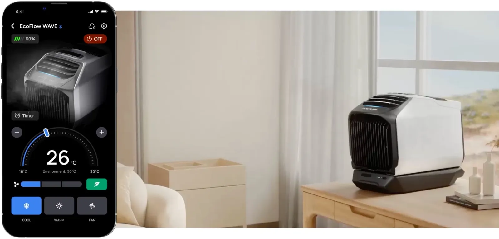 - Flexible Power Options: Runs from AC power, DC power, EcoFlow power stations, or the optional Wave 2 battery.