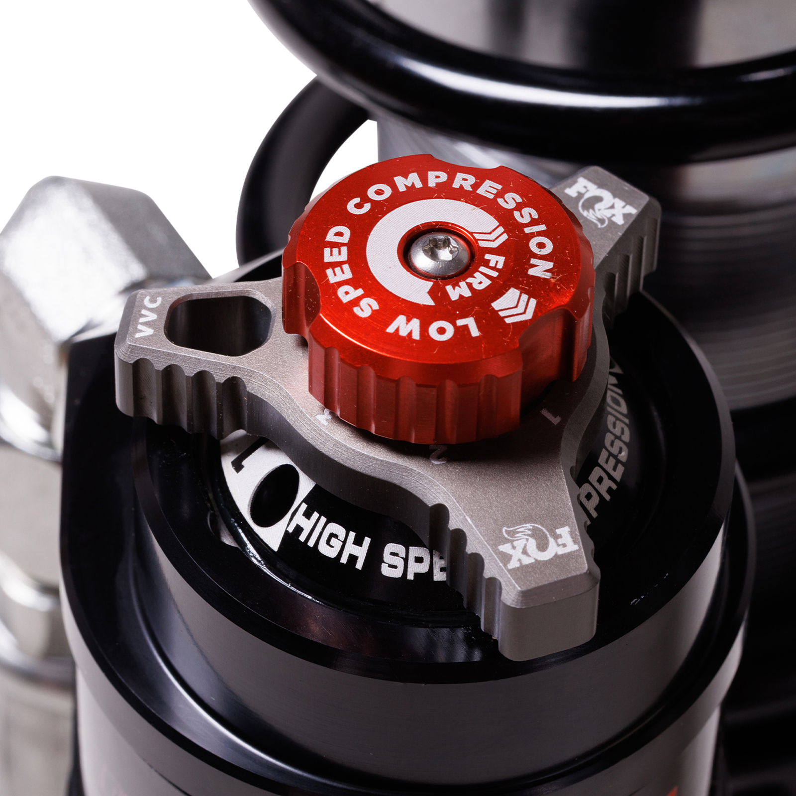 DSC EVO features Variable Valve Control (VVC) on the high-speed circuit. VVC doesn't add preload to the shim stakc to adjust high-speed damping but rather changes the leverage ratio of the shims as they flex.