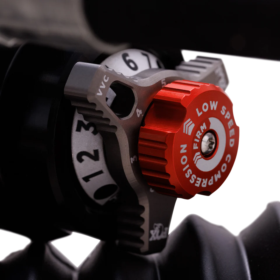 FOX Performance Elite Series 2.5 improve the LC300 and LX600 chassis by eliminating the vehicles forward rake, providing a level ride height, and increasing the suspension articulation. Type III anodization prevents corrosion and wear of the 2.5-inch aluminum bodies. External reservoirs increase oil capacity and decrease the harshness associated with nitrogen ramp-up. Each reservoir features a Dual Speed Compression Evolution (DSC EVO) adjuster strategically mounted to eliminate interference with aggressive tires at full lock. DSC EVO features Variable Valve Control (VVC) on the high-speed circuit. VVC doesn't add preload to the shim stack to adjust high-speed damping. The result is more comfort, independent high and low-speed circuits, and increased capacity for big hits. Add clicks of highspeed compression without sacrificing small-bump sensitivity. Performance Elite shocks with DSC EVO provide versatility without compromise to navigate rough terrain and enhance on-road manners while remaining comfortable and in control.