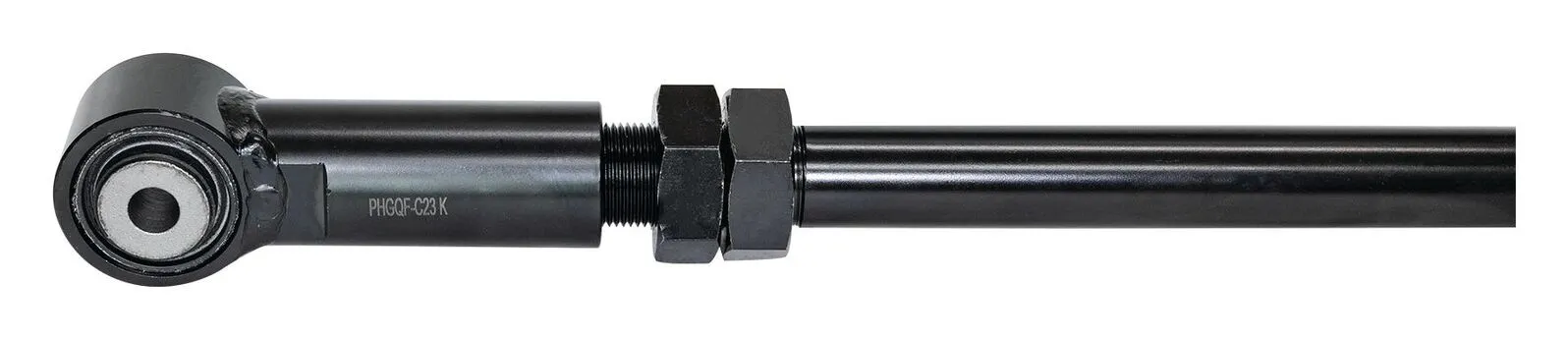 The Panhard Rod, runs from chassis to diff in solid axle vehicles, it is designed to prevent side-to-side movement and keep the axle centred under the vehicle. CalOffroad Rear Panhard Rods are adjustable to allow fine-tuning of the axle position and include upgraded high-flex rubber bushes for increased comfort and less noise. The rods have a 33mm OD with a solid wall and include a steering damper mounting bracket. Suitable for vehicles lifted 2" and up.