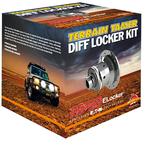 The Terrain Tamer Differential Locking Kit includes the Australian made Harrop Eaton ELocker. The Harrop Eaton ELocker is an electromagnetic locking differential, requiring no compressor or air lines, that is manually engaged with an on/off switch by the driver.