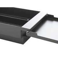 Consists of:1x Under console safe2x Keys supplied Materials used:Black powder-coated mild steelCarpeted base Product Dimensions:433mm (17.1'')ÿL x 275mm (10.8'') W x H 100mm (3.9'') Internal Dimensions:375mm (14.8'') L x 265mm W (10.4'') (Raised section)/205mm (8.1'') W (Lower Section) x 107mm (4.2'') H Weight:3.2kg (7.1lbs)