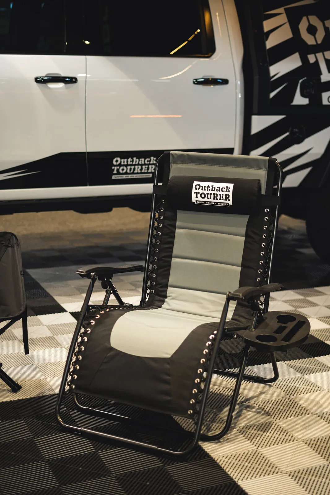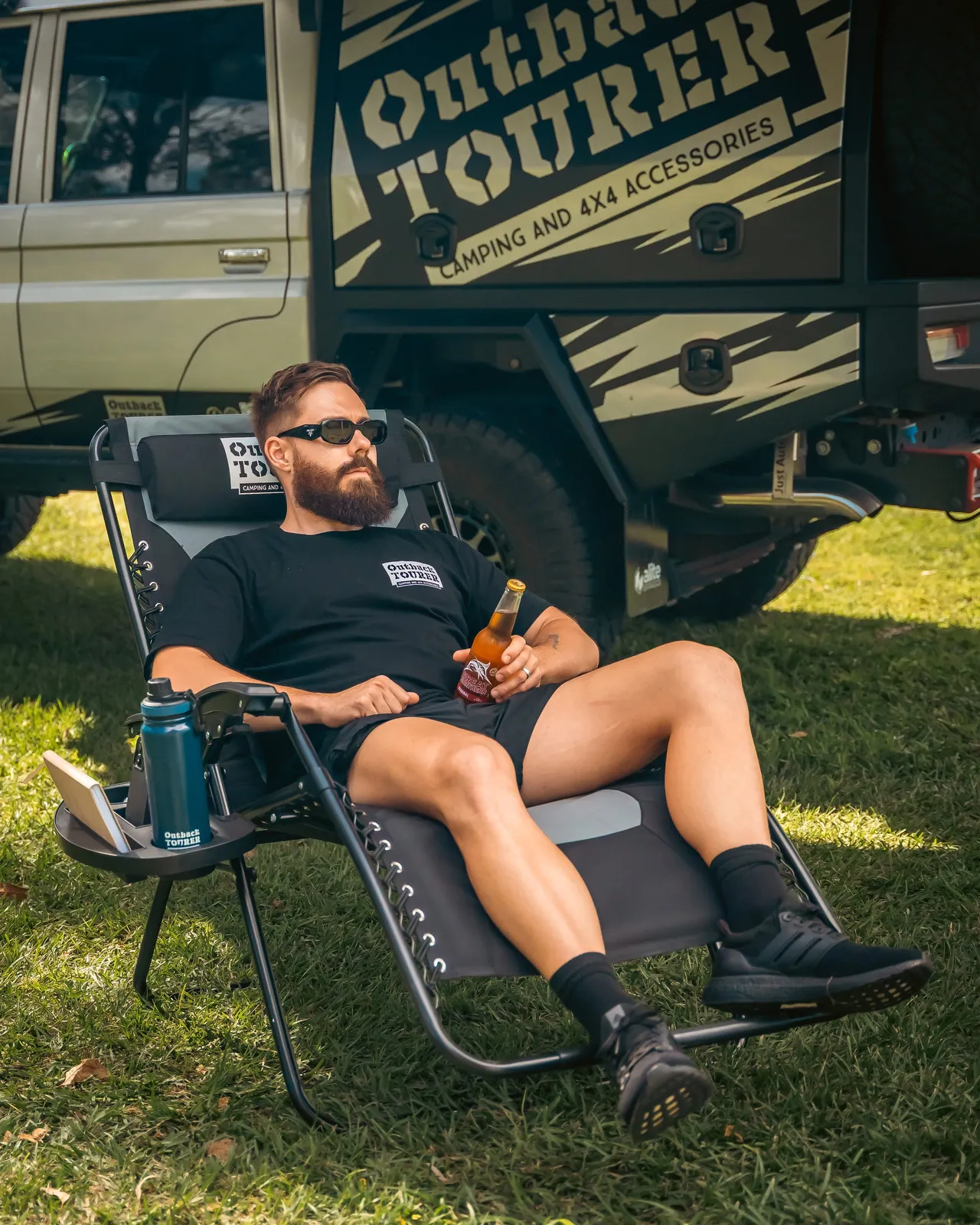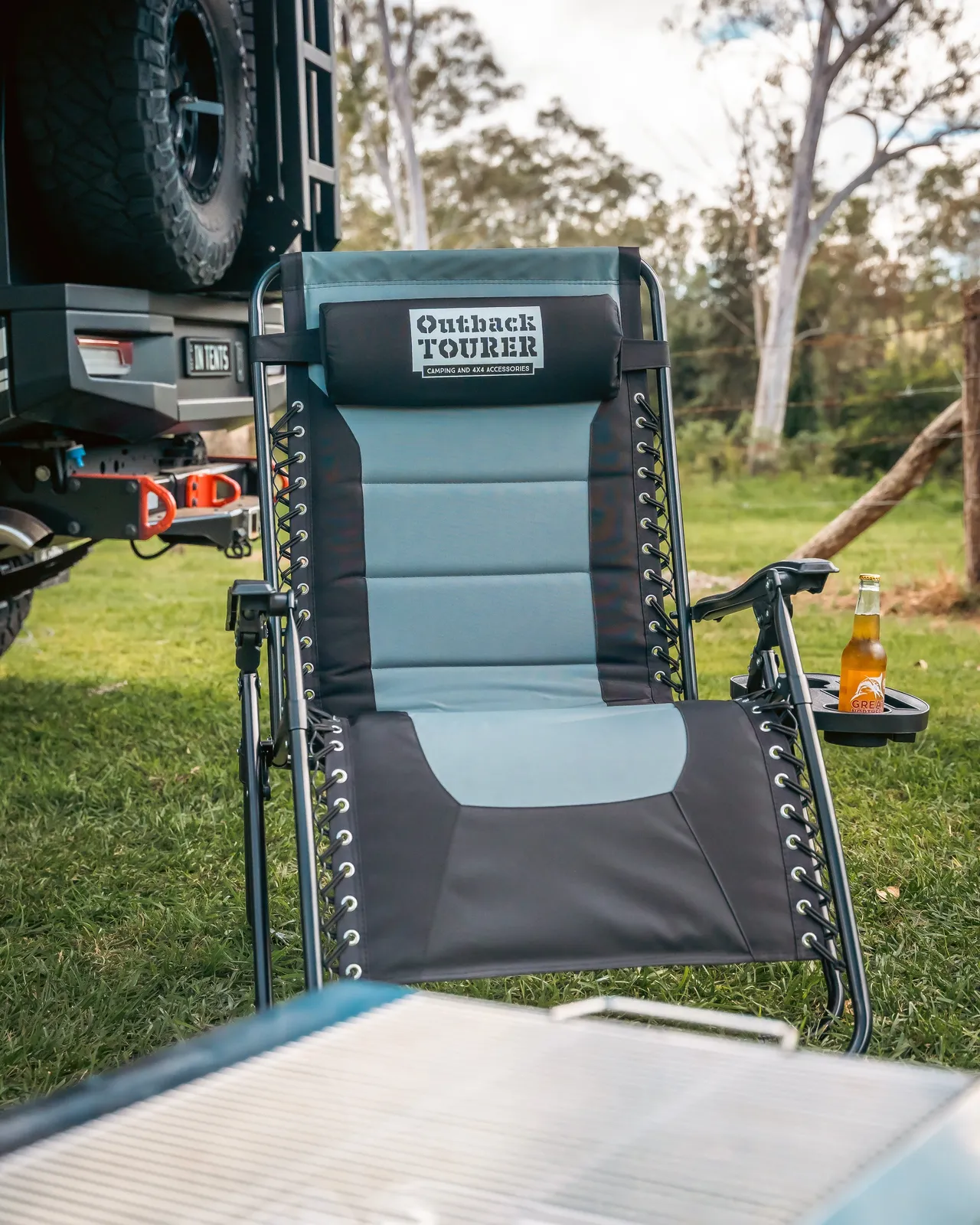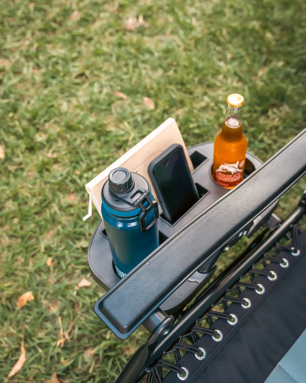 Relax in comfort wherever you set up camp. This reclining chair features a cushioned seat, adjustable headrest, and a smooth lock-in-place recline. With 2 drink holders, a phone holder, and a side pocket for your book, everything you need is within reach.