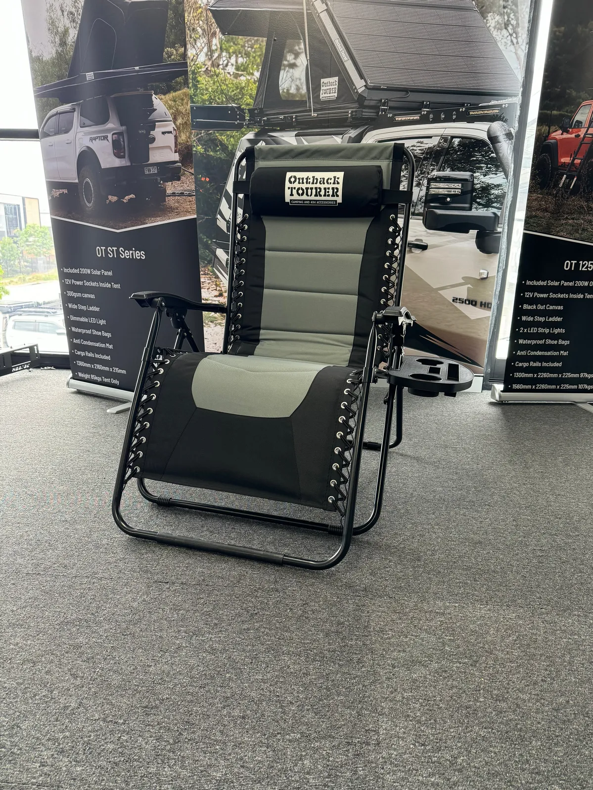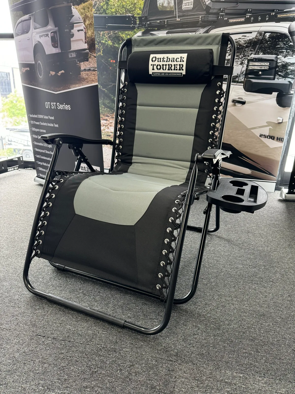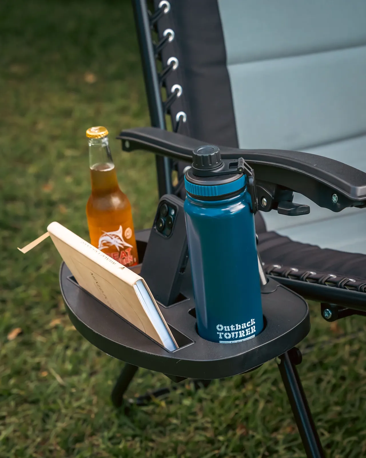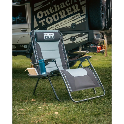 Relax in comfort wherever you set up camp. This reclining chair features a cushioned seat, adjustable headrest, and a smooth lock-in-place recline. With 2 drink holders, a phone holder, and a side pocket for your book, everything you need is within reach.