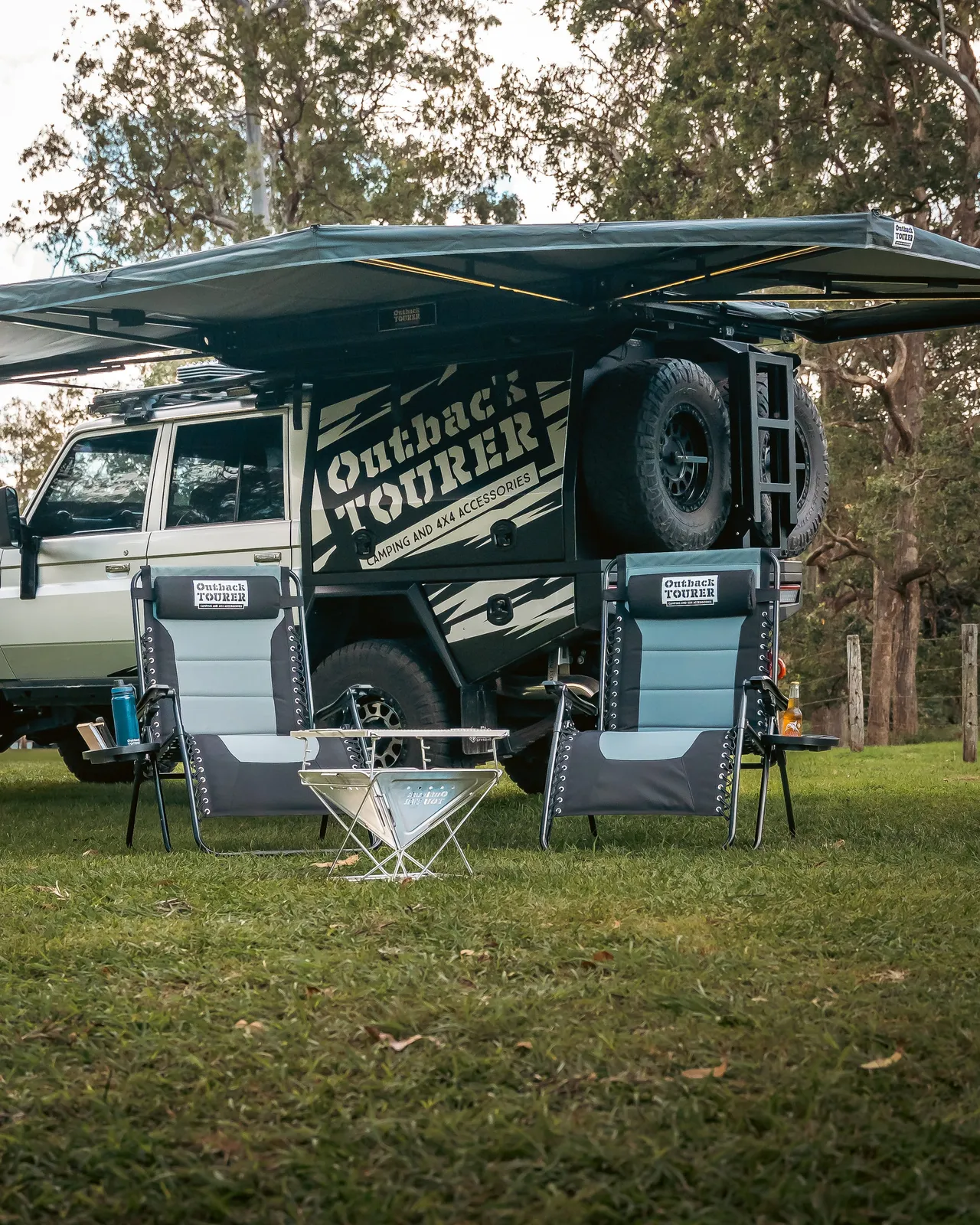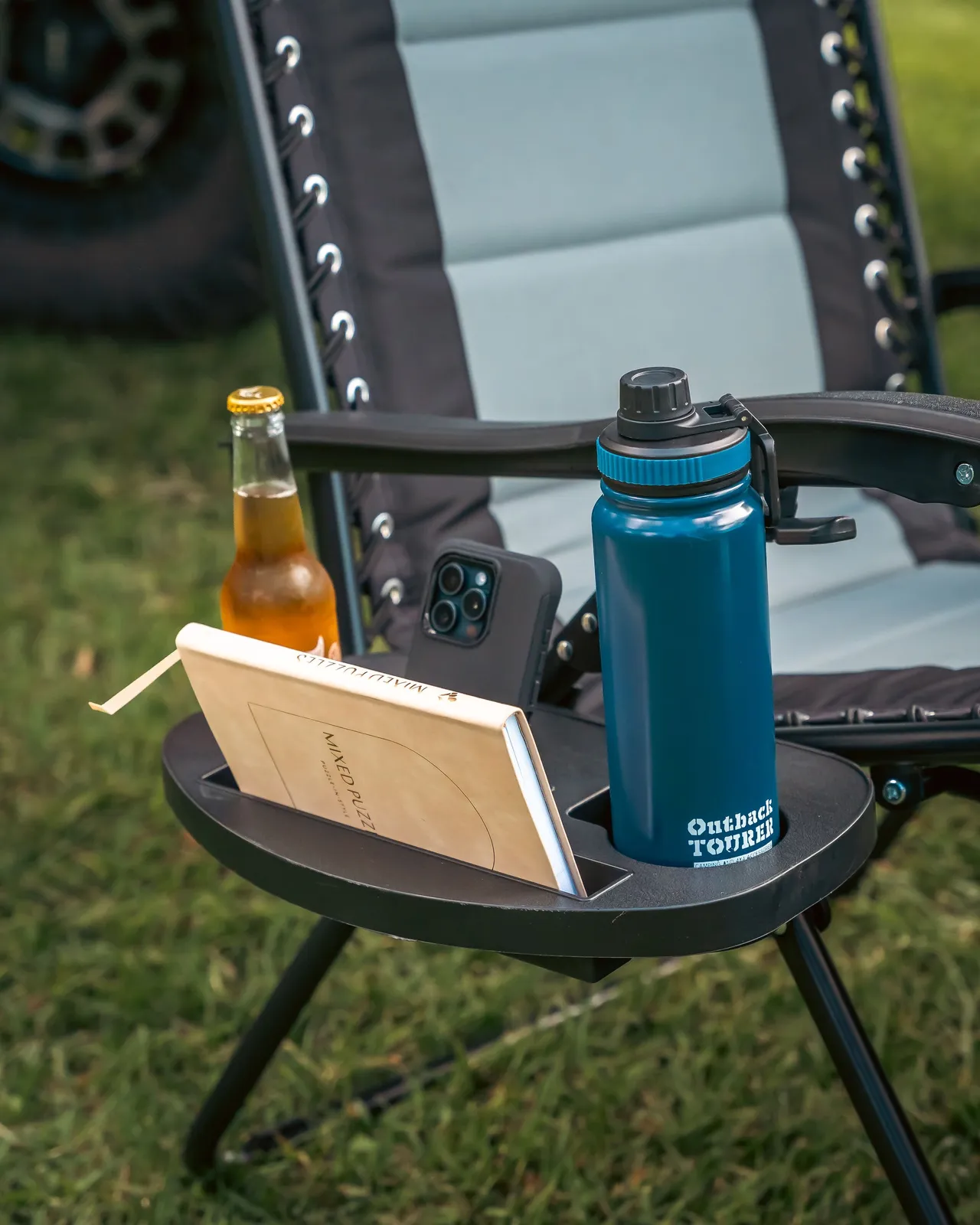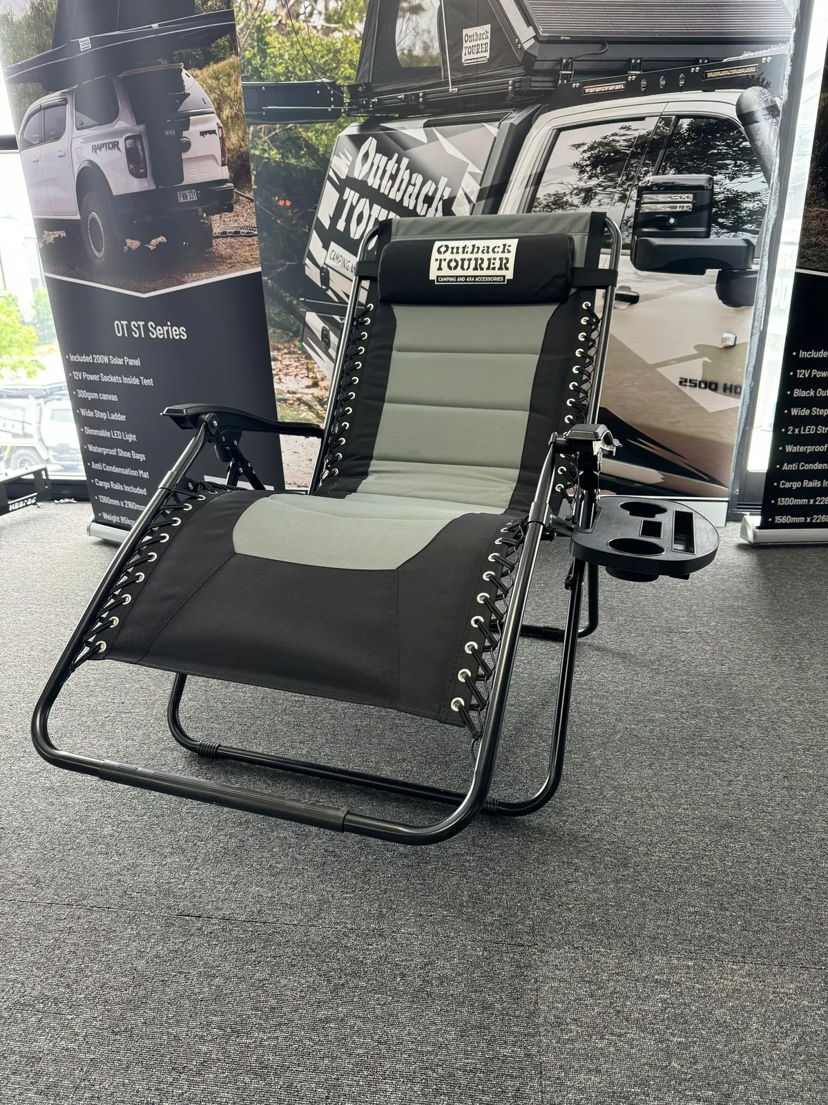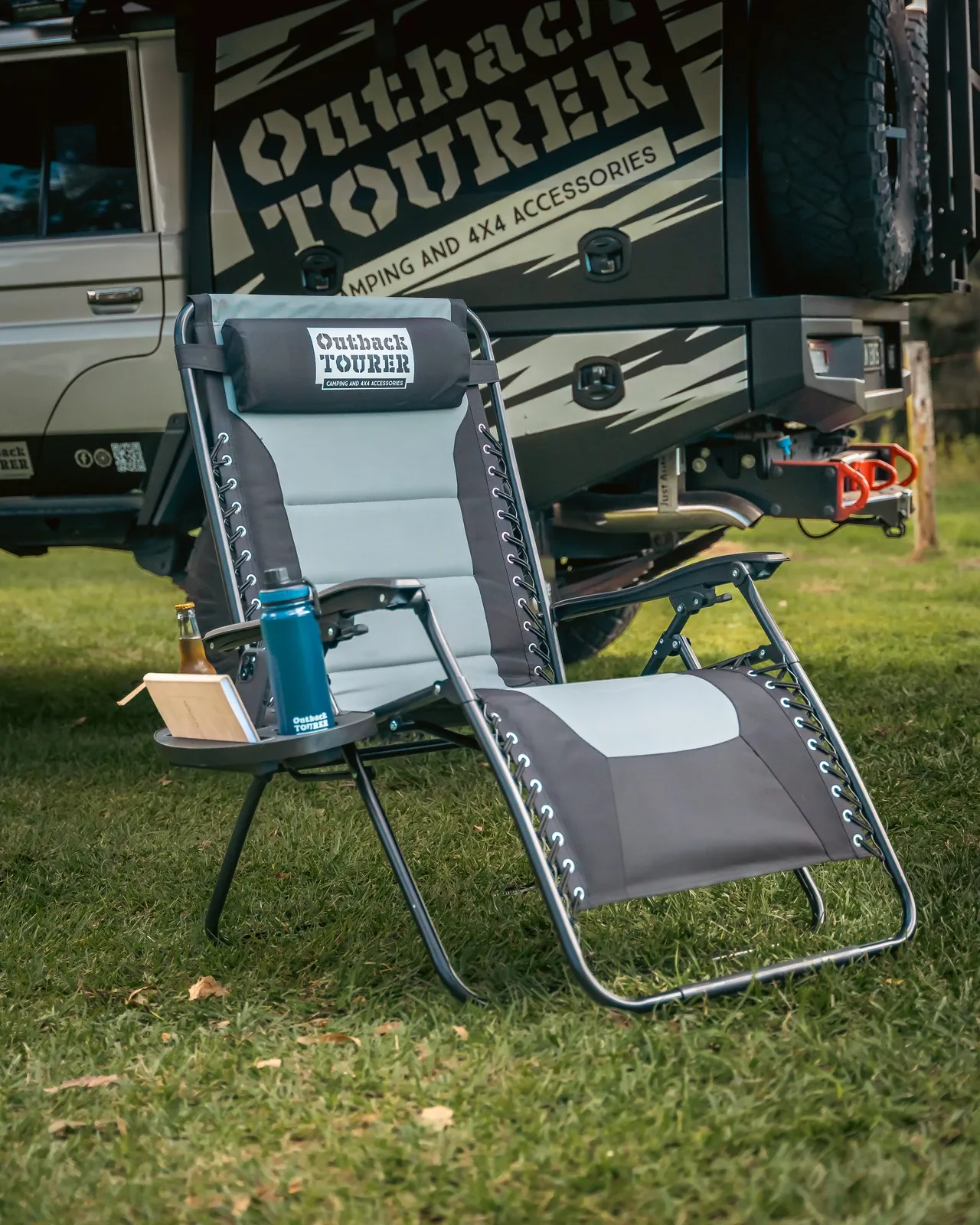 Relax in comfort wherever you set up camp. This reclining chair features a cushioned seat, adjustable headrest, and a smooth lock-in-place recline. With 2 drink holders, a phone holder, and a side pocket for your book, everything you need is within reach.