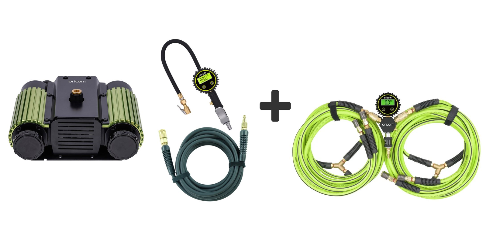 Oricom AIR40 Twin Cylinder Air Compressor & Inflation Kit + 4 Tyre Inflator/Deflator Combo