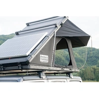 But that's not all our tents come fully equipped with roof rails and solar panels for maximum convenience. Setting up camp has never been easier, as our heavy-duty gas struts allow you to open the tent in seconds. And with a telescopic ladder measuring 2.3m, all it takes is a simple unlatch and push to enjoy your cosy nights sleep.