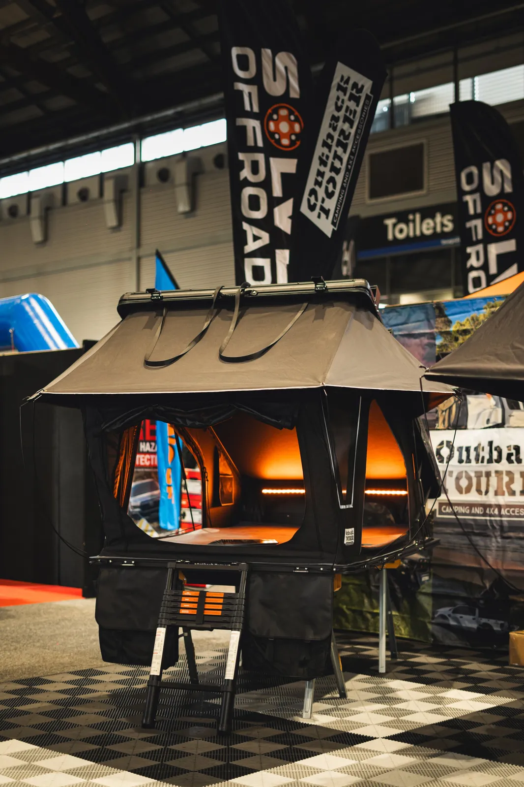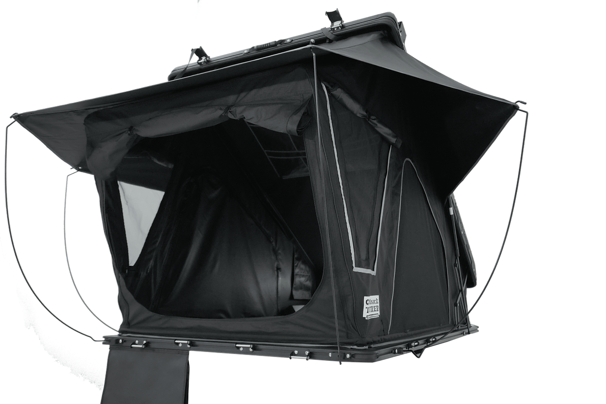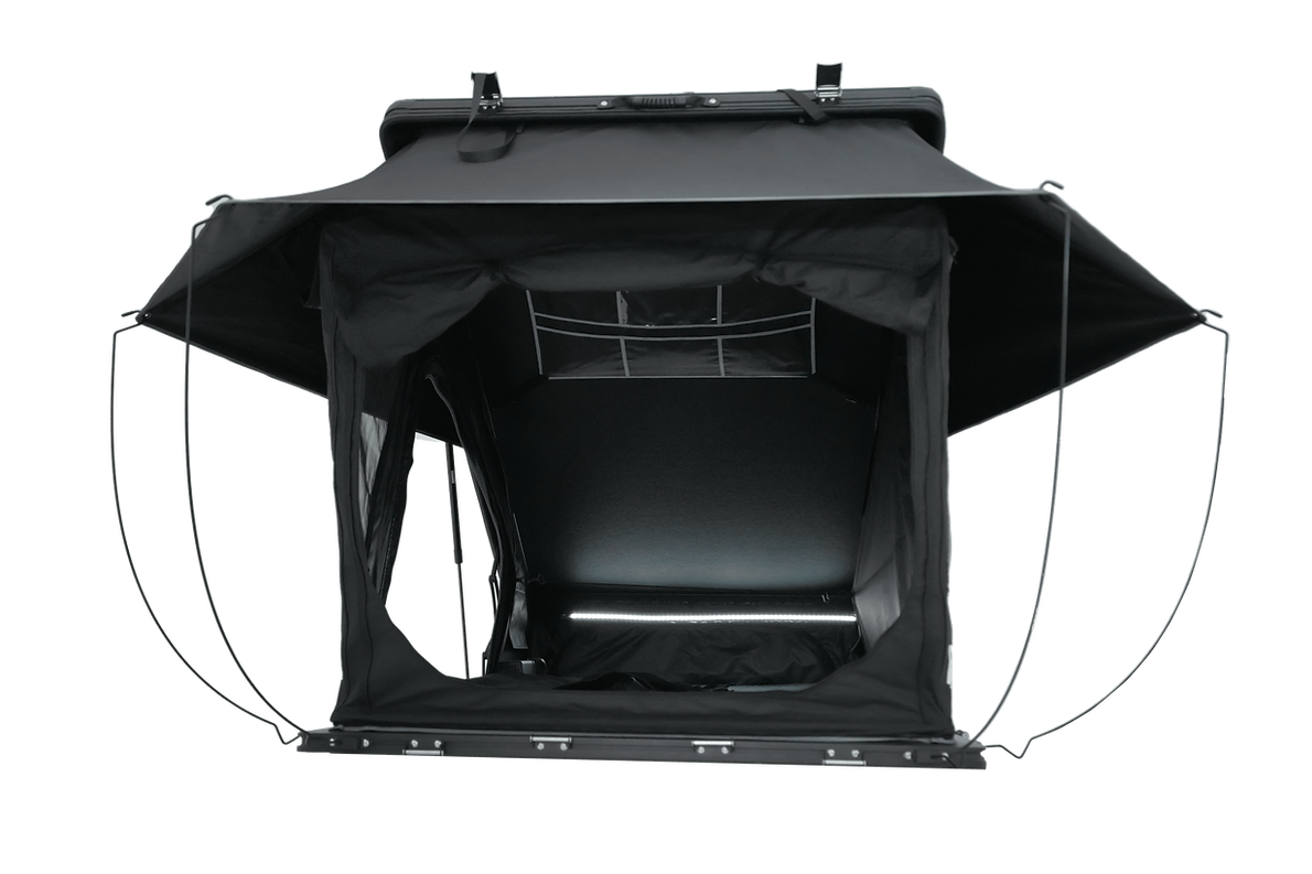 But that's not all our tents come fully equipped with roof rails and solar panels for maximum convenience. Setting up camp has never been easier, as our heavy-duty gas struts allow you to open the tent in seconds. And with a telescopic ladder measuring 2.3m, all it takes is a simple unlatch and push to enjoy your cosy nights sleep.