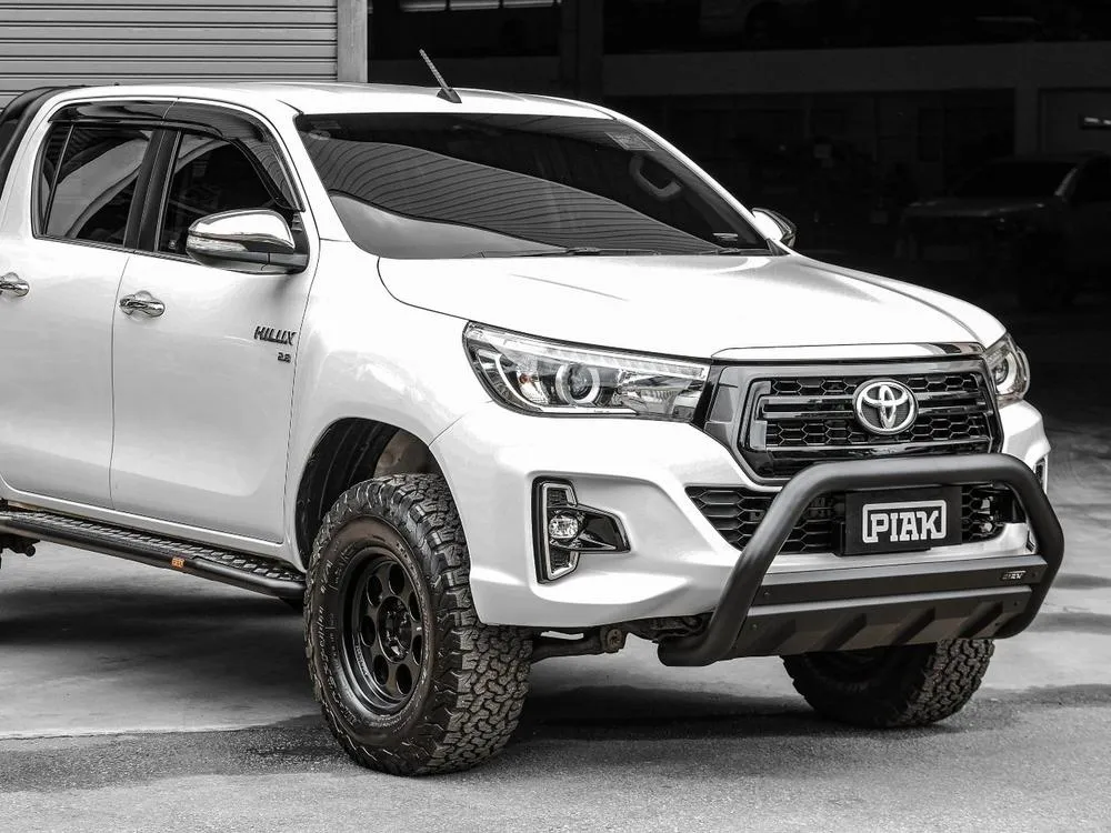 The Nudge Bar for the Toyota Hilux 2018-2020 model is a frontal protection accessory designed to enhance the appearance and safety of the vehicle. Specifically crafted for the Toyota Hilux within the 2018-2020 range, it offers a sturdy barrier against minor collisions and impacts, while also providing a mounting point for auxiliary lighting.