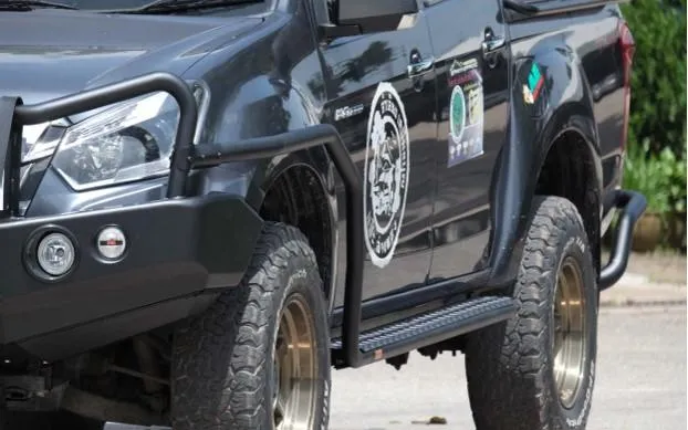 The black side step for the Isuzu D-Max 6/2012-6/2020 model in black is an accessory designed to enhance accessibility to the vehicle. Crafted specifically for the Isuzu D-Max 6/2012-6/2020 model, it provides a convenient step for easier entry and exit.