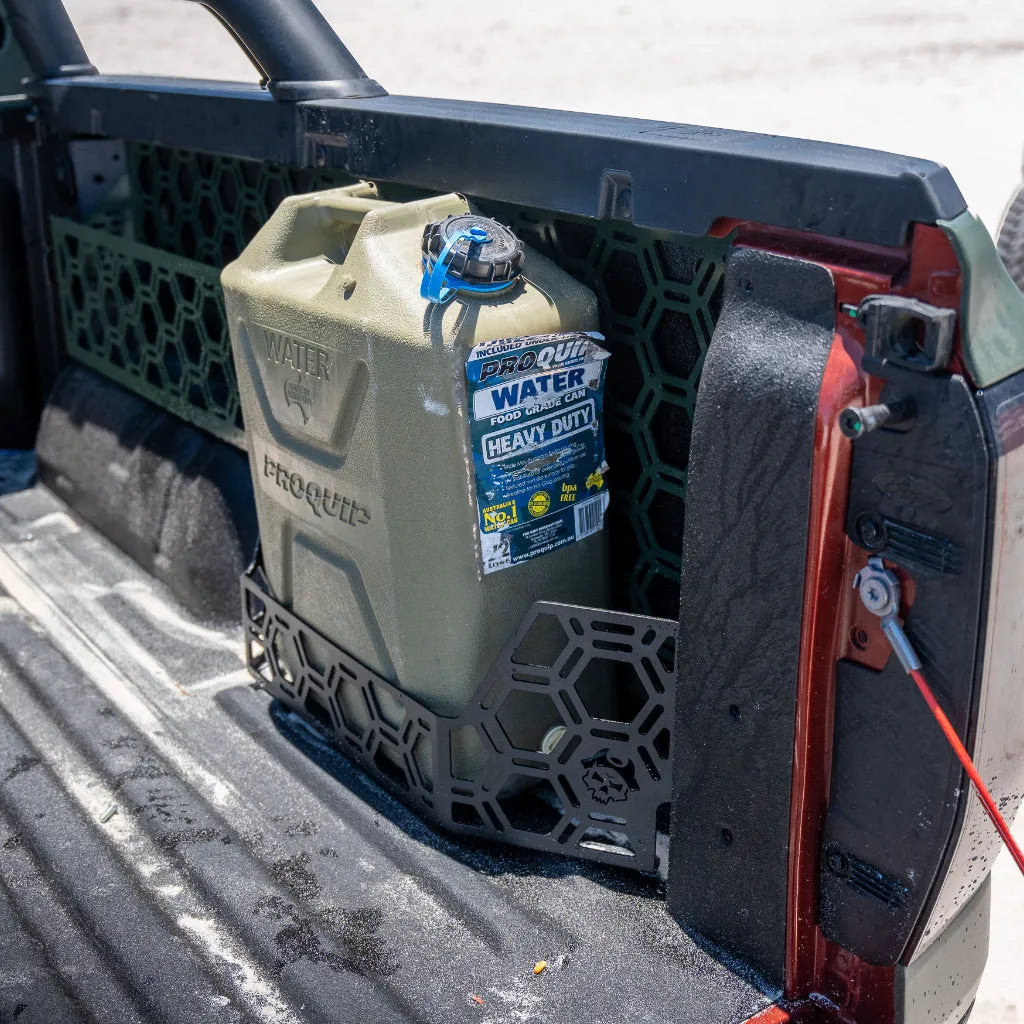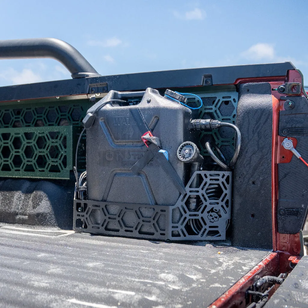 Designed specifically for the 2023+ Volkswagen Amarok, this ingenious little gem creates the perfect storage solution for your 20L jerry can without invading your valuable tub space.