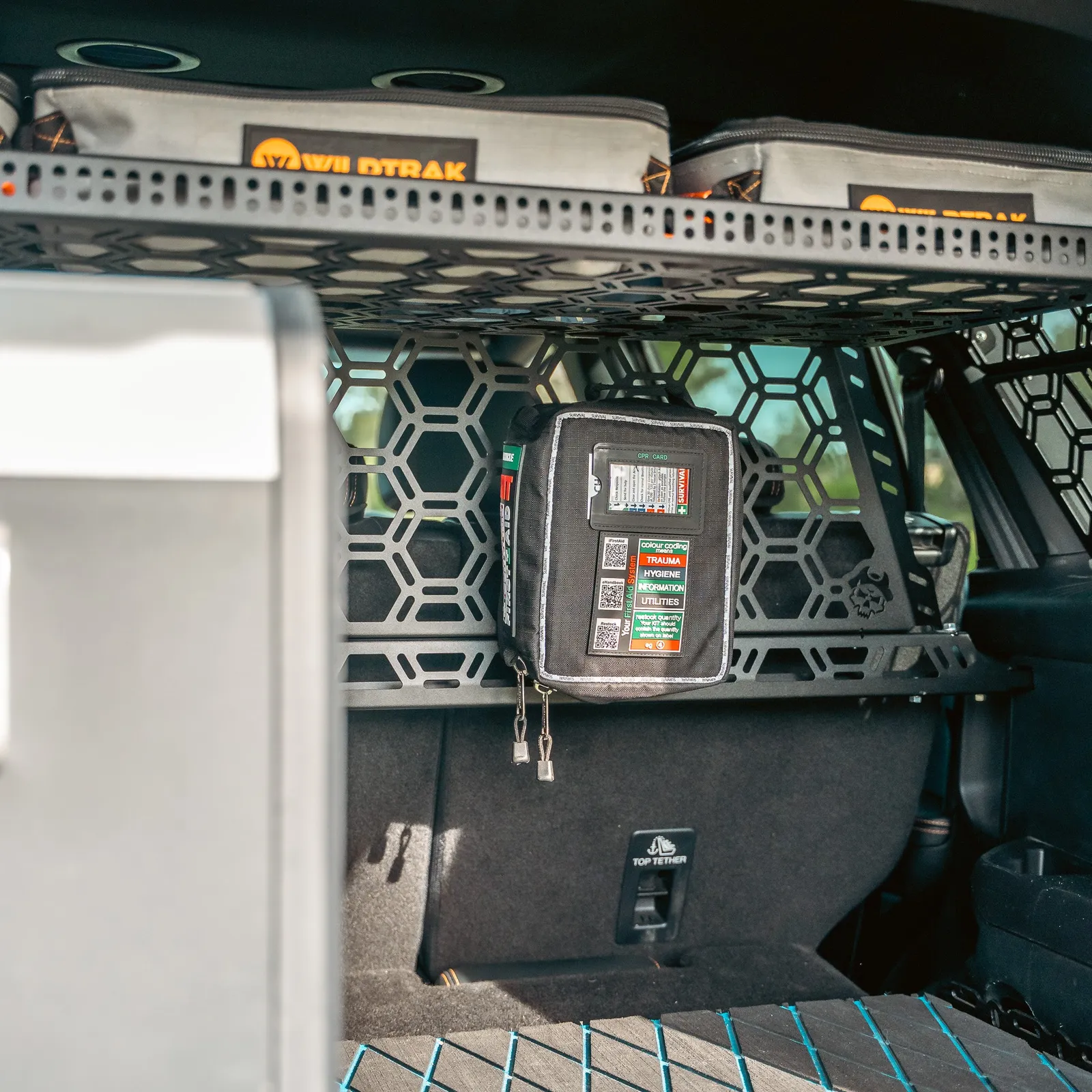 Crafted from high-strength powder-coated steel with a bold hexagonal mesh pattern, the Everest Cargo Divider is designed to secure your load while maintaining rear visibility and airflow. Its modular cutouts are perfect for mounting accessories like pouches, MOLLE panels, or quick-access gear, giving you complete customization over your setup.