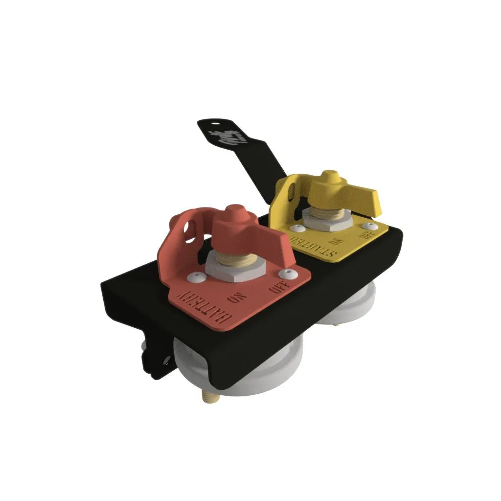 Sleek, compact yet aesthetically pleasing double pole isolator bracket. Specifically designed to tuck into the the side of the battery for ease of access. Houses 1 x battery isolator & 1 x starter isolator.
