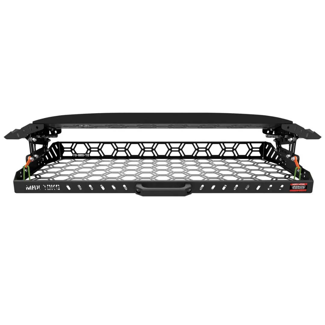 Fabricated from precision-cut, powder-coated steel and engineered specifically to suit the contours of the Y62 Patrol, it combines rugged durability with seamless integration. The signature honeycomb platform offers multiple tie-down points, while the robust drop mechanism makes deploying or tucking it away a one-hand job.