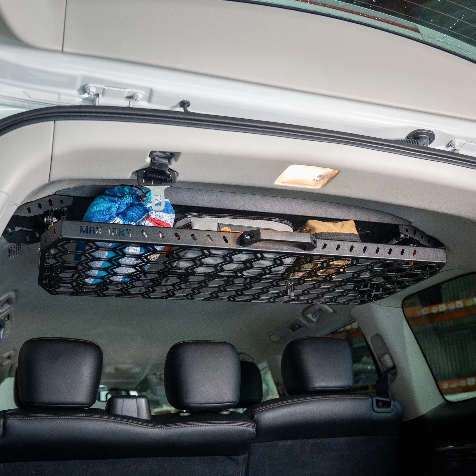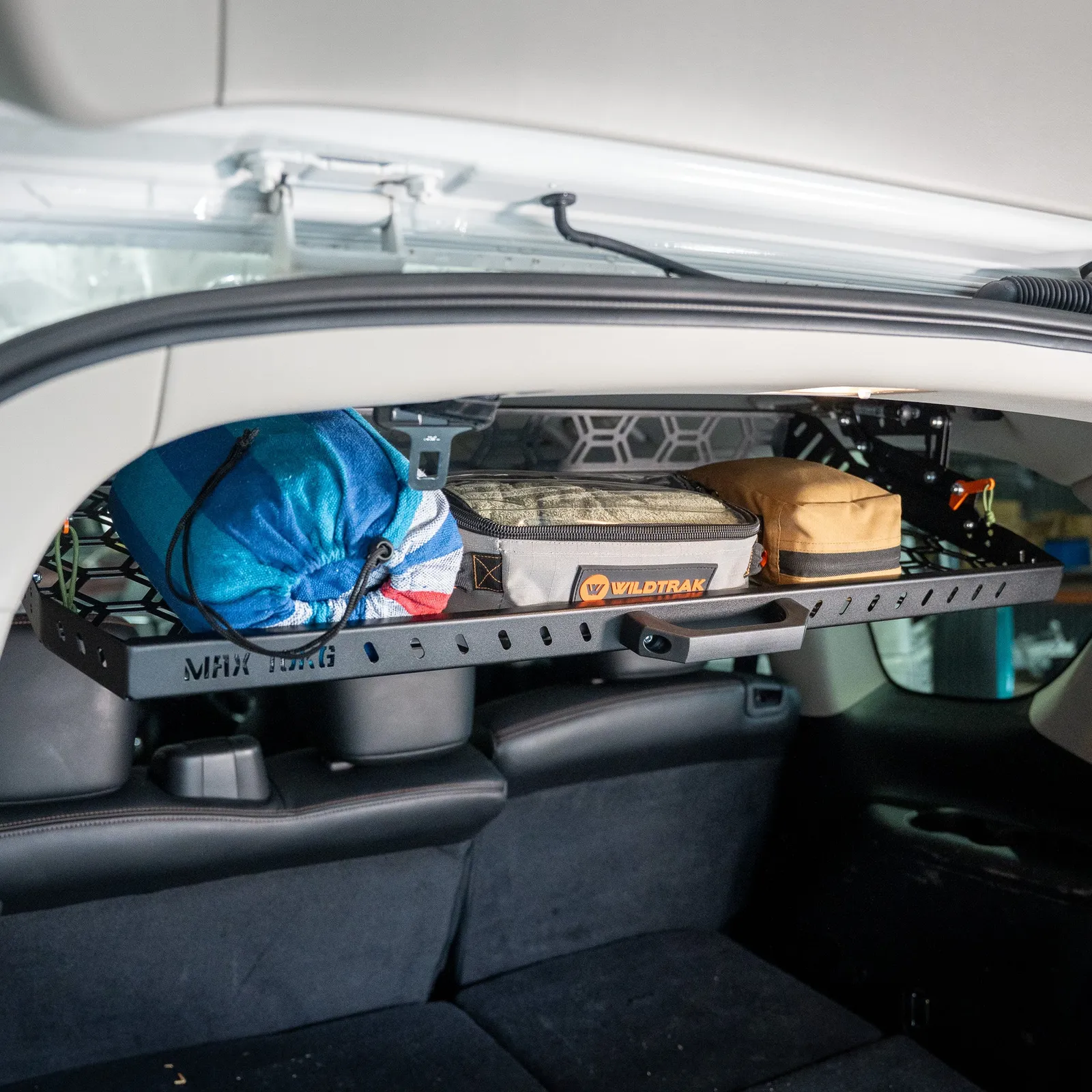 Mounted neatly to the upper interior of your rear cargo area, this innovative shelf drops down with ease, giving you a secure and accessible space to stow lighter gear, soft bags, recovery gear, or anything you want within armÕs reach Ñ but out of the way.