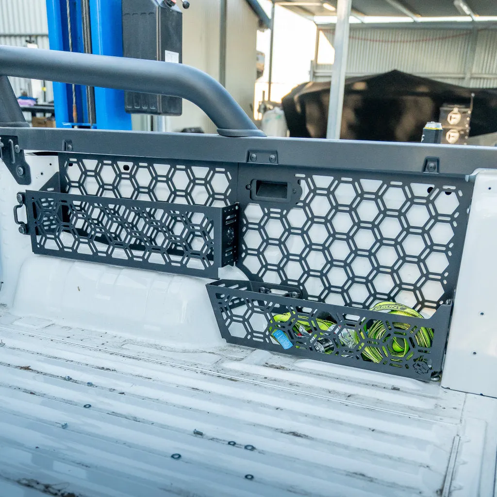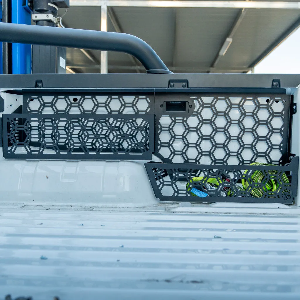 ItÕs here legends, the ultimate storage solution for the dead space in your tub. Complete with a unique molle panel pattern, it also comes with 2 molle patterned storage pockets to throw your ratchet straps, recovery gear, work boots, dirty clothes etc.