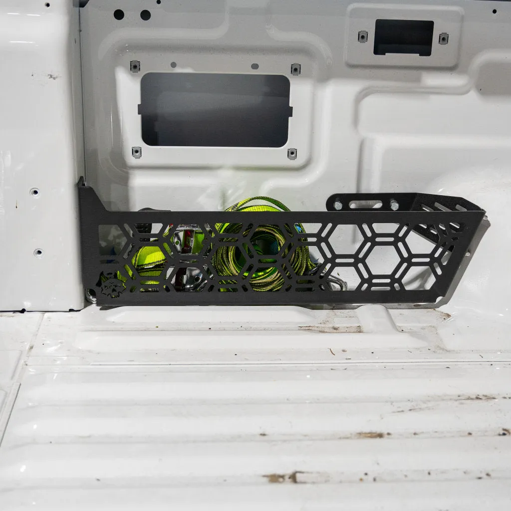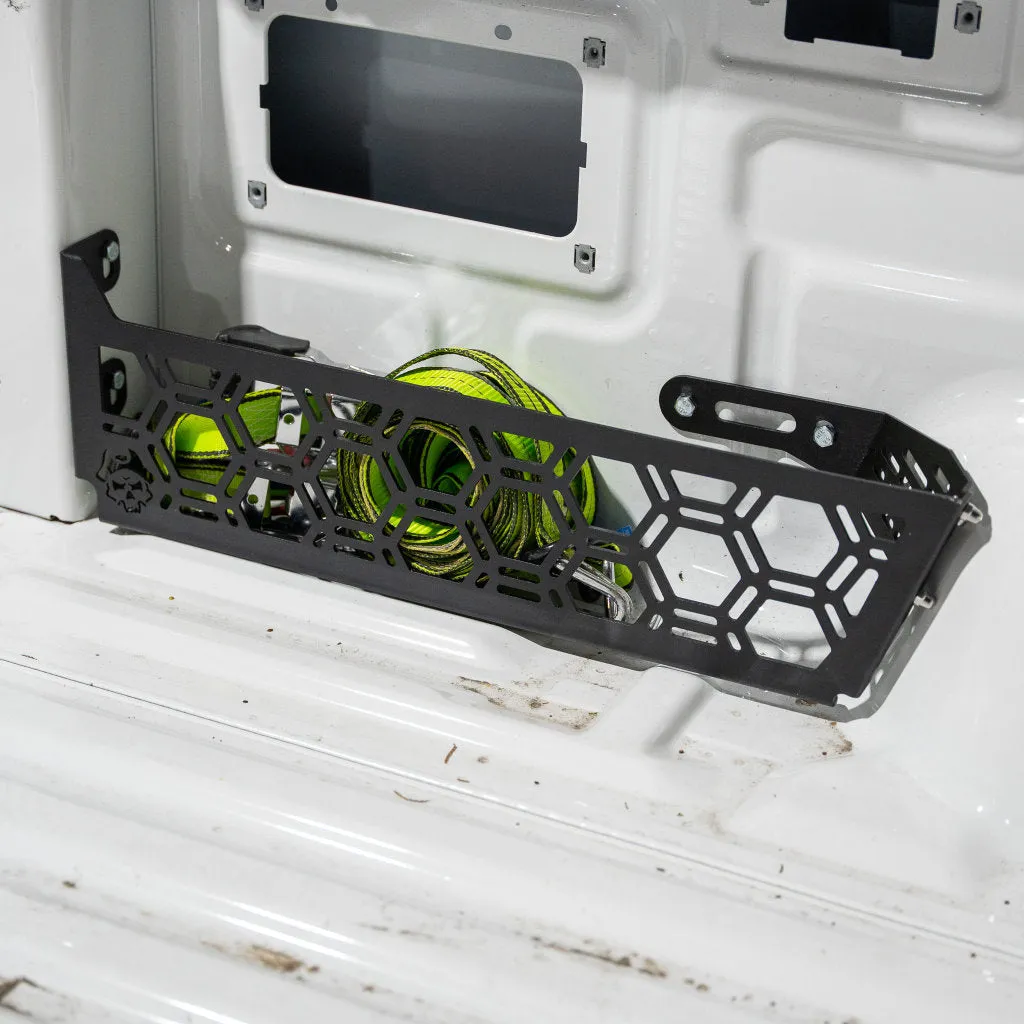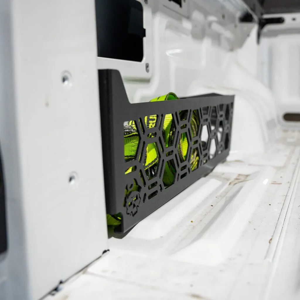 ItÕs here legends, the ultimate storage solution for the dead space in your tub. Complete with a unique molle panel pattern, this molle patterned storage pocket is awesome for throwing your ratchet straps, recovery gear, work boots, dirty clothes etc in & keeping them out of the way in a convenient location.