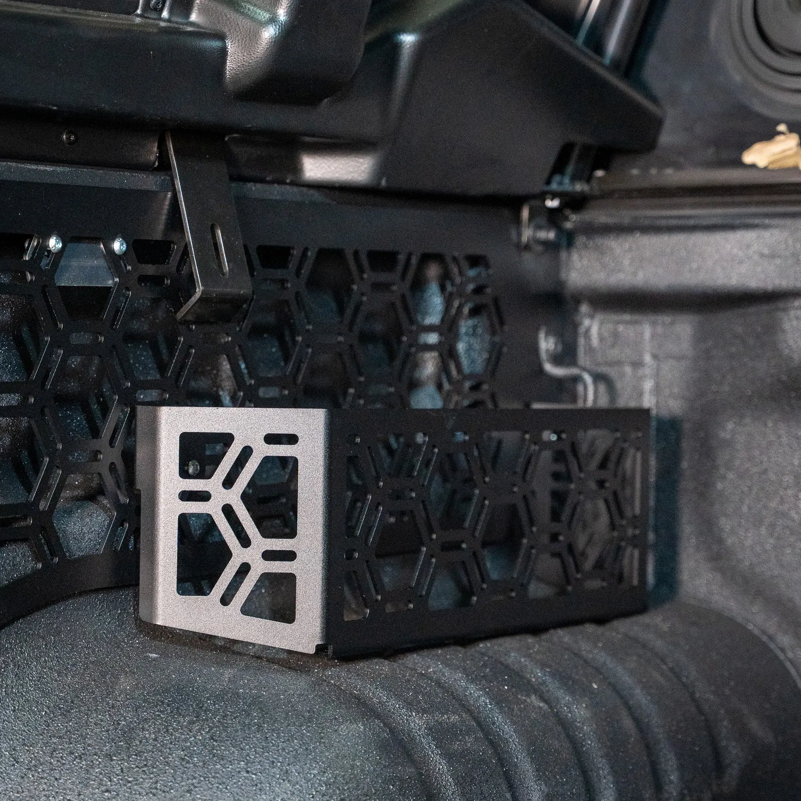 ItÕs here legends, the ultimate storage solution for the dead space in your tub. Complete with a unique molle panel pattern, this molle patterned storage pocket is awesome for throwing your ratchet straps, recovery gear, work boots, dirty clothes etc in & keeping them out of the way in a convenient location.