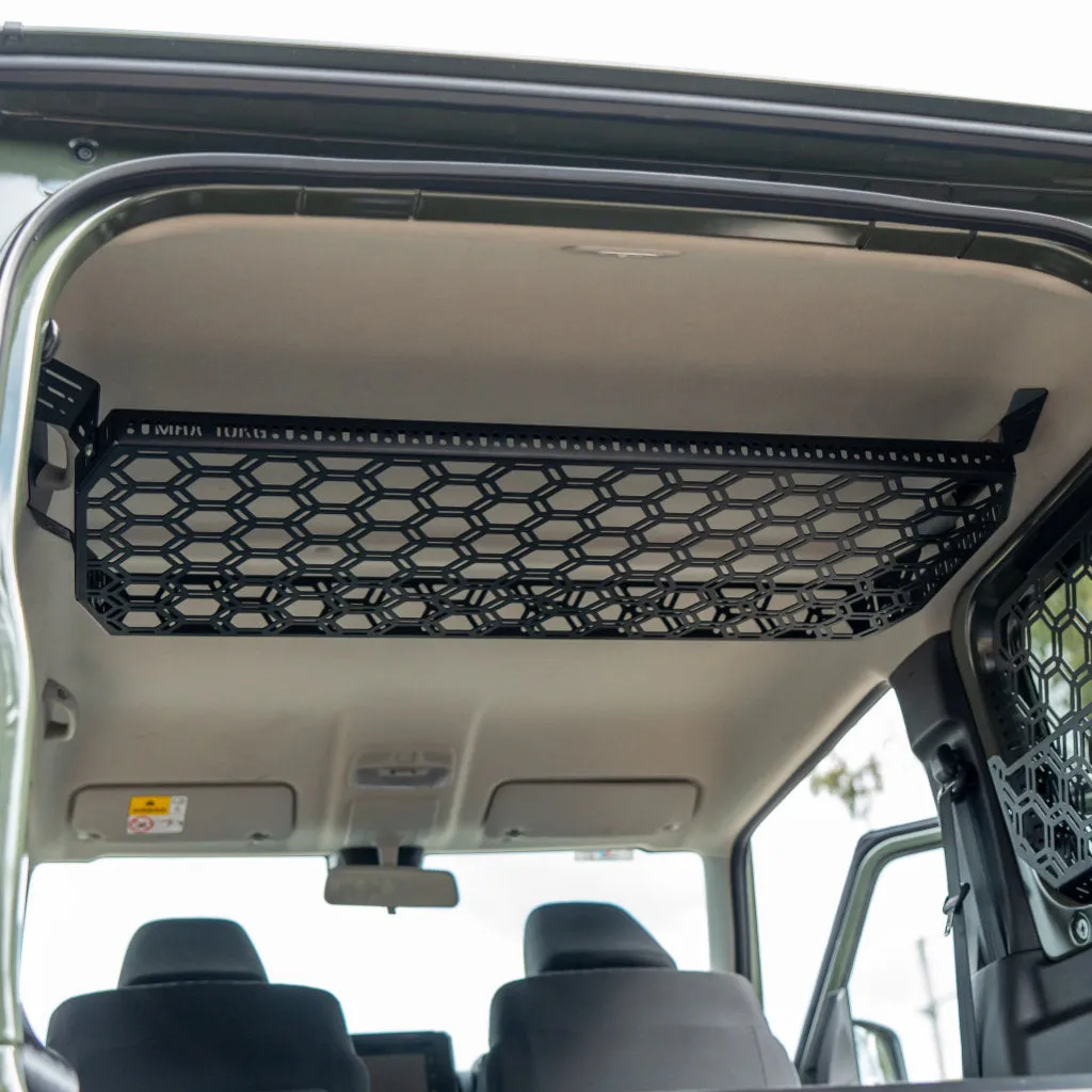 Our rear roof parcel shelf will have your back with its convenient and smart design. Just chuck Ôem in the tray or strap them with some Velcro onto the molle panel, and you're good to go - no drilling, no modifying and no obstruction to your rearview mirror!