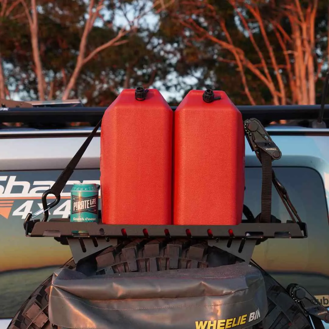 Upgrade your rig with the ultimate space-saving solution Ñ the Pirate Camp Co Spare Wheel Platform. Designed to mount directly onto your spare tyre, this rugged platform is perfect for carrying gear you donÕt want inside your vehicle, like fuel, water, firewood, chainsaws, and more.
