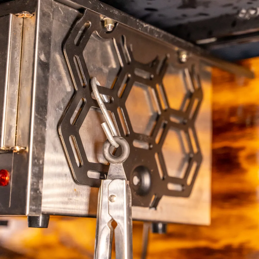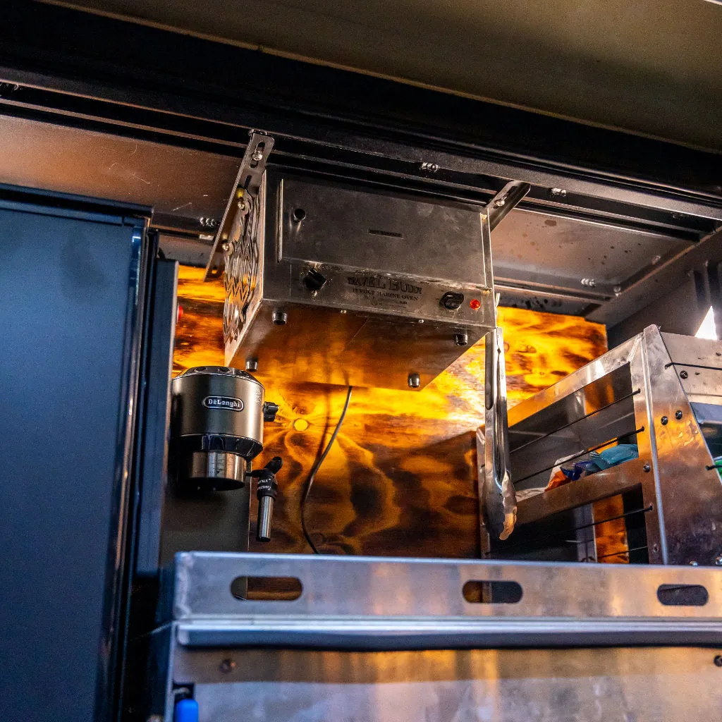 Sleek, tidy and aesthetically pleasing Travel Buddy Oven mounting bracket. Utilises the existing uni-struts in the roof of your canopy, but is not limited to this. You can mount it on an existing false panel in the roof, or under shelves etc.