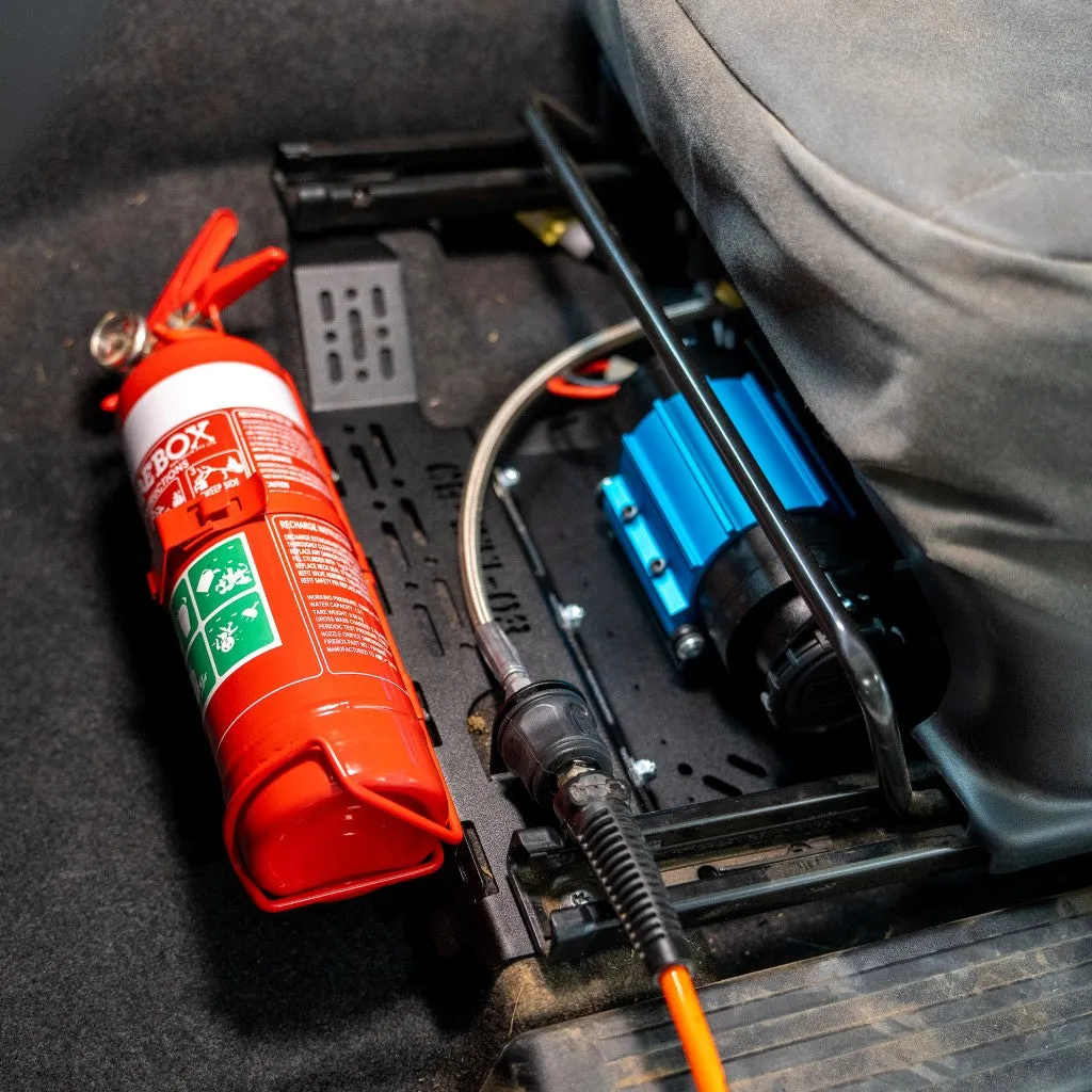 An ARB compressor is a highly valuable accessory for several reasons - inflate and deflate tyres on the go, use air tools or tweak your suspension. Now pair this functionality with a fire extinguisher mount and we reckon we have come up with something pretty brilliant.