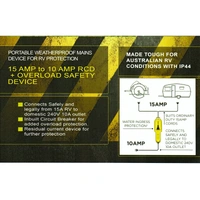 Safely convert your 15 amp caravan or RV power lead to fit a 10 amp household power outlet with this RCD converter.