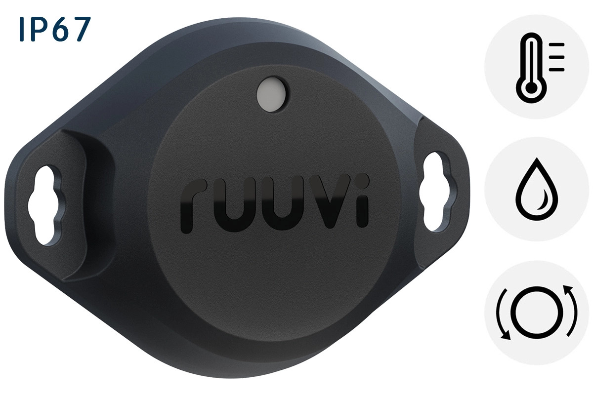 The IP67 certified RuuviTag Pro (3-in-1) comes with a breathable membrane that enables air humidity monitoring. It tolerates temporary wet conditions.