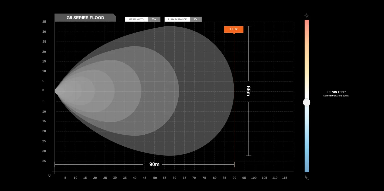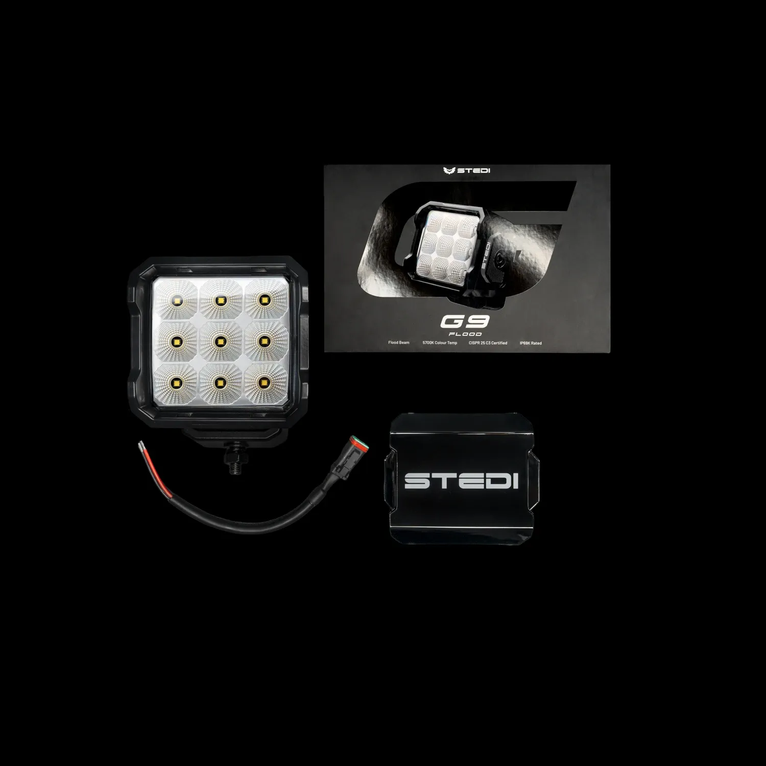 The STEDI G9 Flood delivers robust, worksite-grade illumination for industrial, agriculture and other heavy use environments. Engineered with CREE XP-L2 LEDs and a revised optic, it produces a smooth 5700K white flood that reaches 1 lux at 90 metres and spreads 65 metres wide to light the near field.