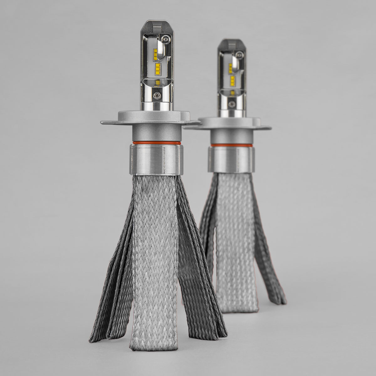 We?ve moved away from active cooling (fan kits) and adopted passive cooling. Passive cooling not only substantially increases reliability, but the flexible cooling belts of our Copper Heads offer the ability to retain the use of the factory dust caps maintaining the water & dust resistance of the headlight housing. With a lower profile than that of a fan-cooled kit, compatibility and ease of installation are also much wider.