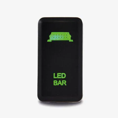 The wording illuminates green via the dash light circuit, with the LED bar illuminating green as well, once the switch is in the on position.
