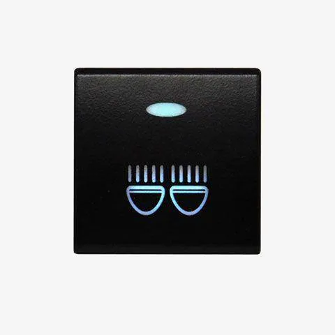 The switch icon illuminates cyan (ice blue) via the dash light circuit. Once the switch is pushed on, the window illuminates.