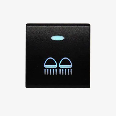 The switch icon illuminates cyan (ice blue) via the dash light circuit. Once the switch is pushed on, the window illuminates.