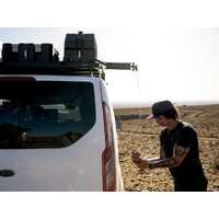 Swings out 90 degrees from the side of the rack, allowing your water tap to clear the side of your vehicle.