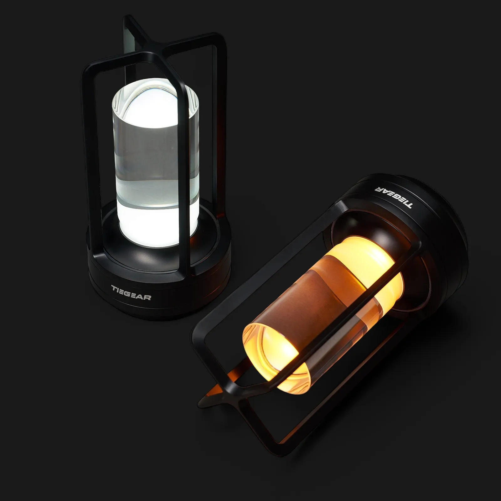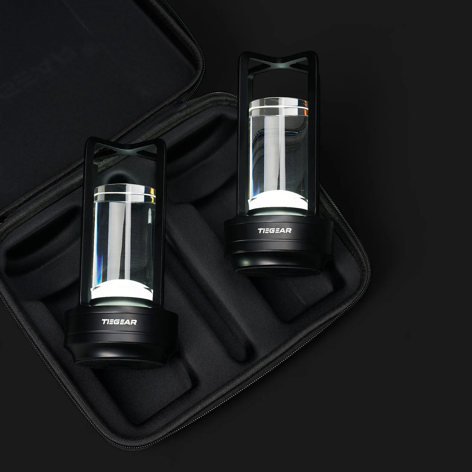 These compact area lights provide a smooth, diffused glow ideal for tables, benches and central camp areas where balanced ambient light is needed. Each unit features a stable base and a clean cylindrical form for a minimal, practical presence.