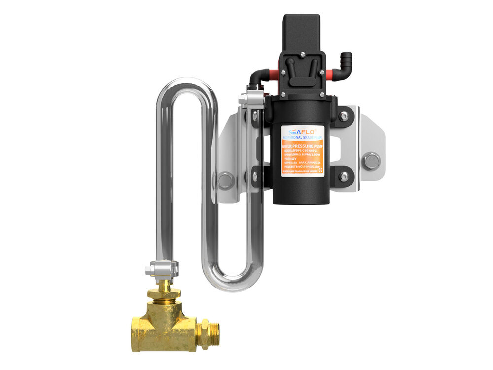 - The included Seaflo pump has swivel fittings, allowing greater flexibility in how you run both the inlet and outlet hoses.