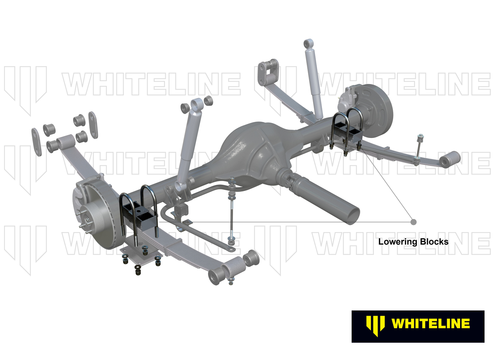 Whiteline aluminium lowering blocks are the economical and quick way to lower many leaf sprung vehicles.