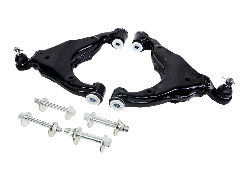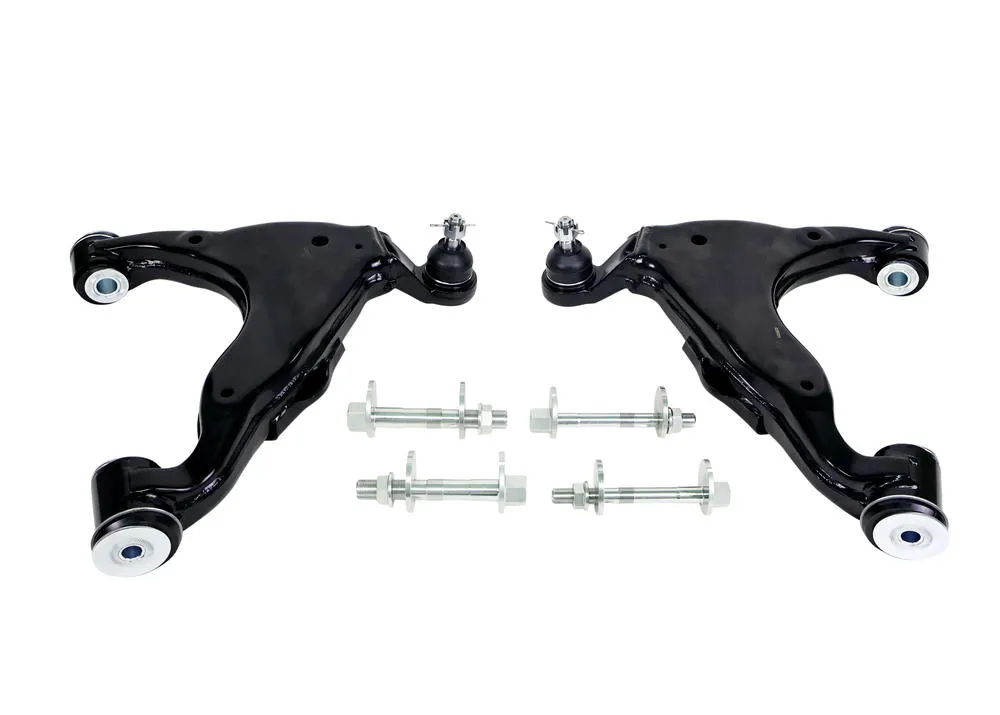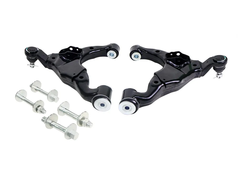 Performance front lower control arm assembly to suit Toyota LandCruiser Prado 150 (without KDSS). Fixed offset alignment correction arms that deliver a balanced mix of comfort, precision and durability. Includes camber bolts and ball joint.